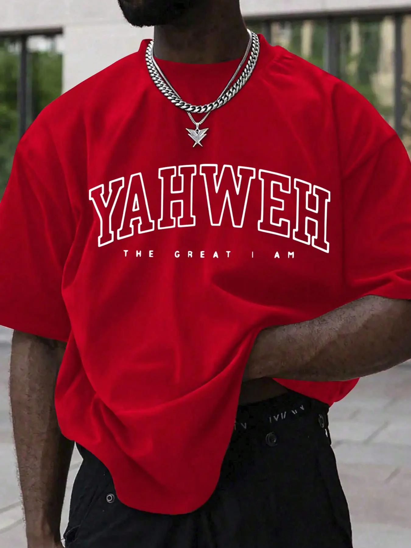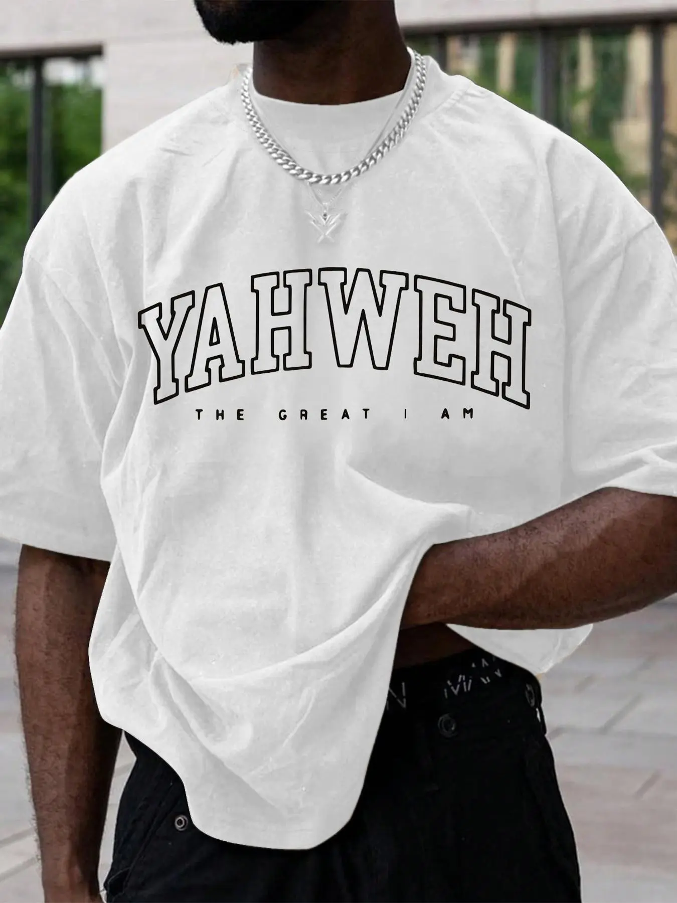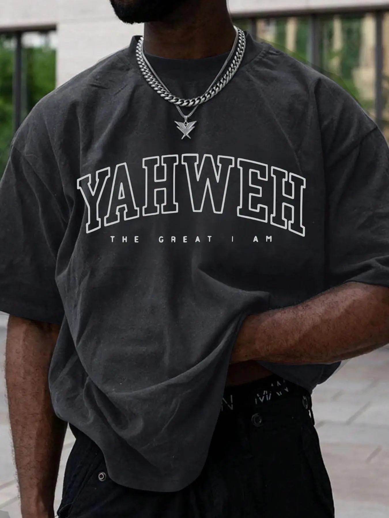 I love the graphic print! If Yaweh is your personal savior then you youbwould love this tee. Available in multiple colors and the fit is true to size with a medium strecth.