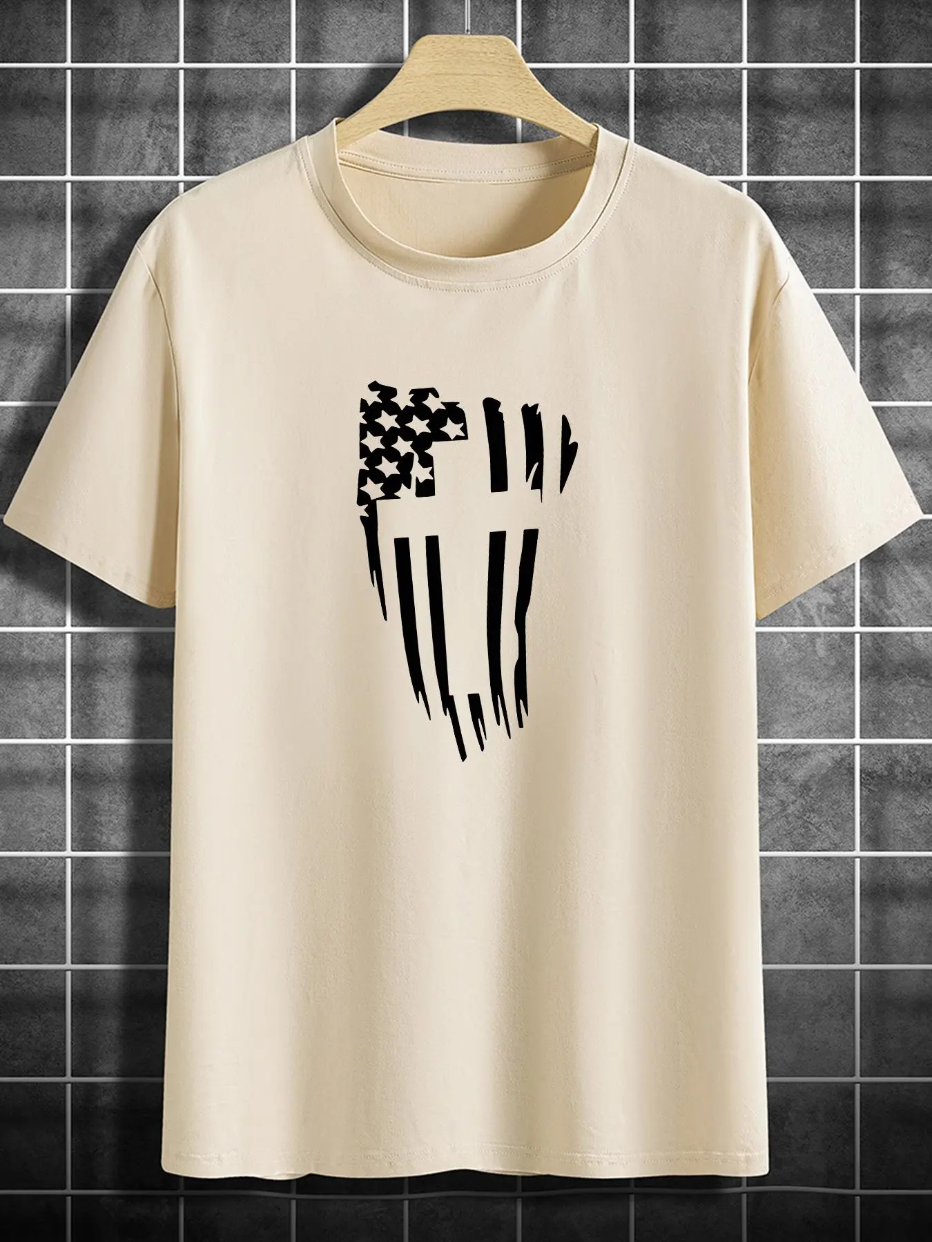 5. Men's Flag & Cross Print Round Neck Tee, Regular Fit Casual Short Sleeve T-Shirt for Summer, Men's Top for Daily Wear