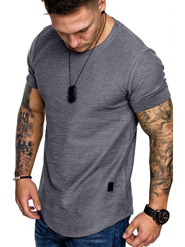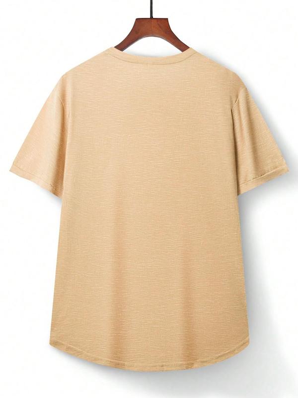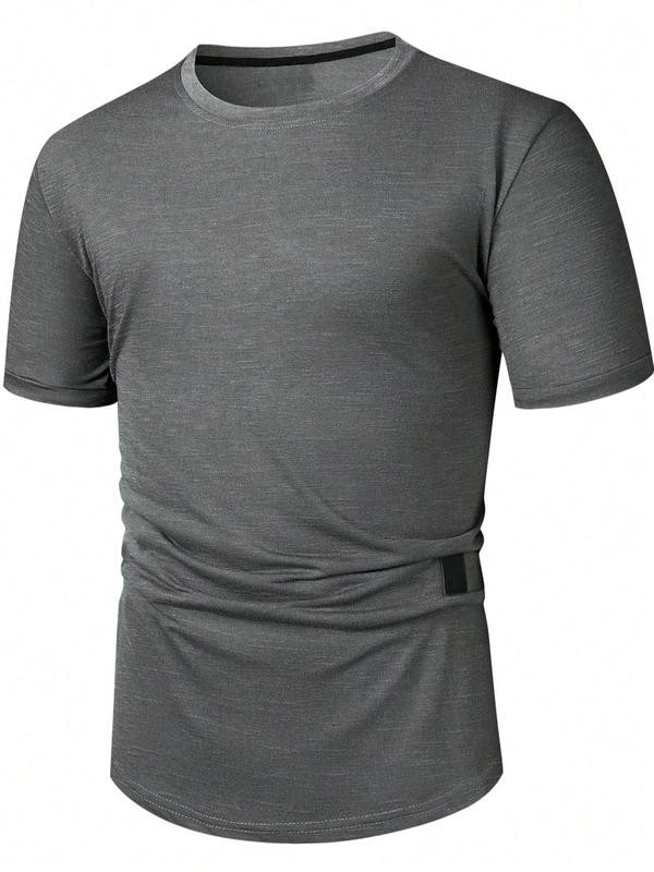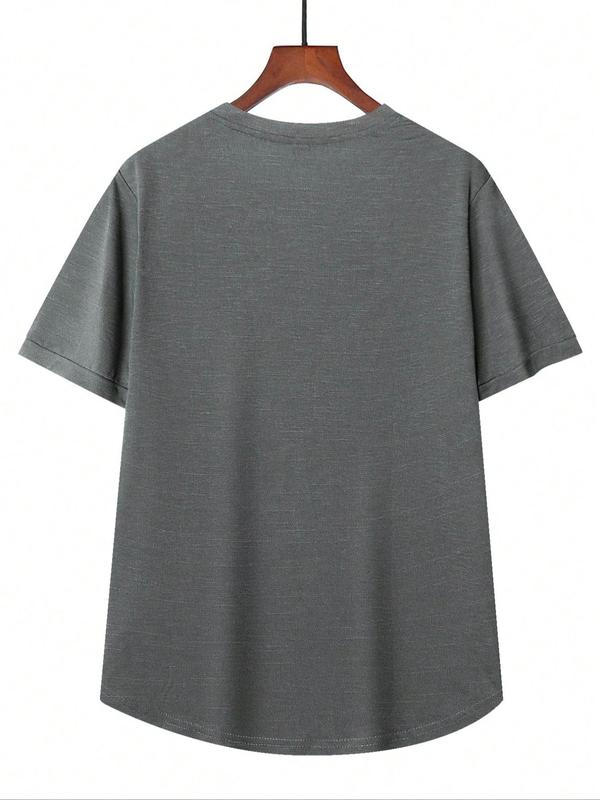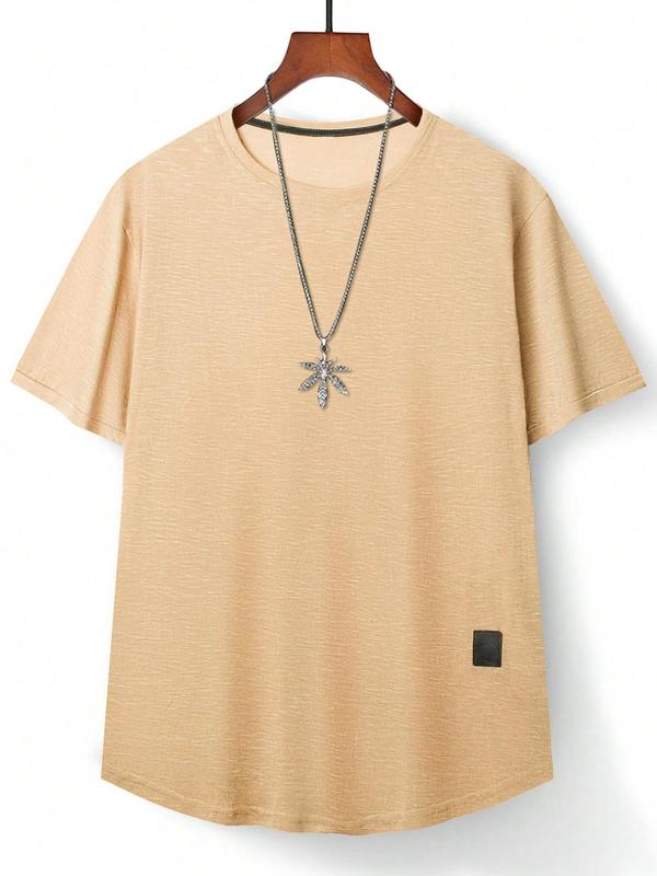 Men's Regular Fit Patched Round Neck Basic Tee, Casual Short Sleeve T-shirt for Summer, Menswear for Daily Wear