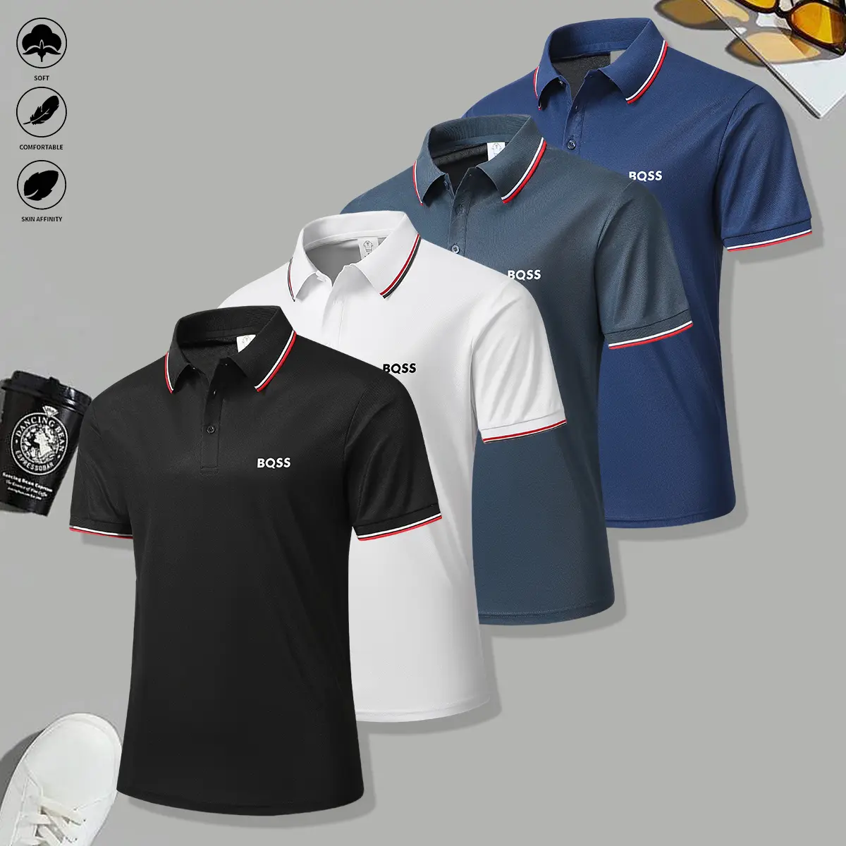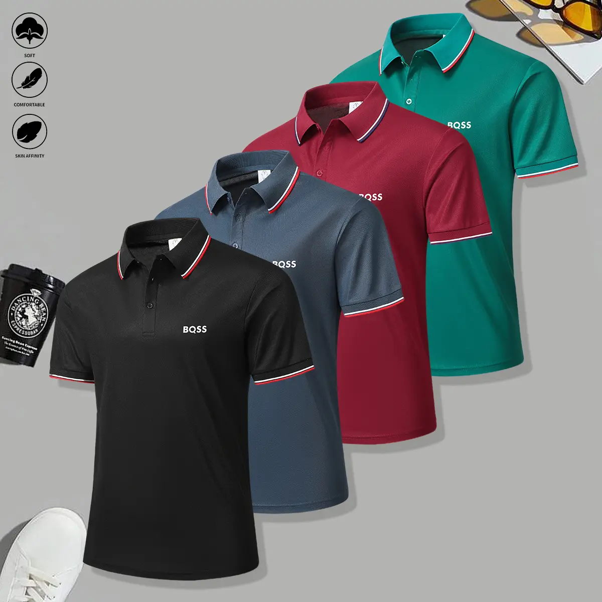4 men's casual short-sleeved polo shirts mixed-color suit, breathable and refreshing, suitable for all seasons, is a good choice for men who give gifts during the holidays