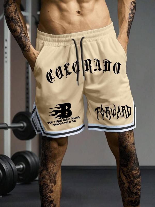 Men's Letter Print Shorts, Casual Comfy Breathable Bottom for Daily Wear, Men's Shorts for Summer