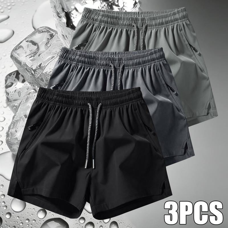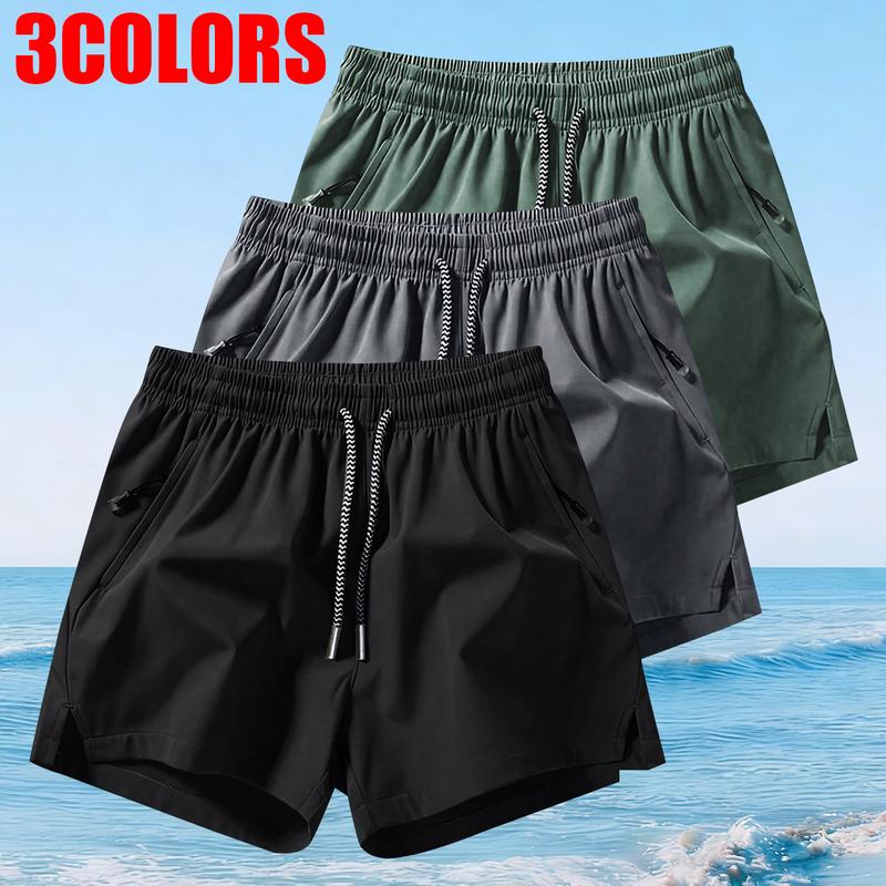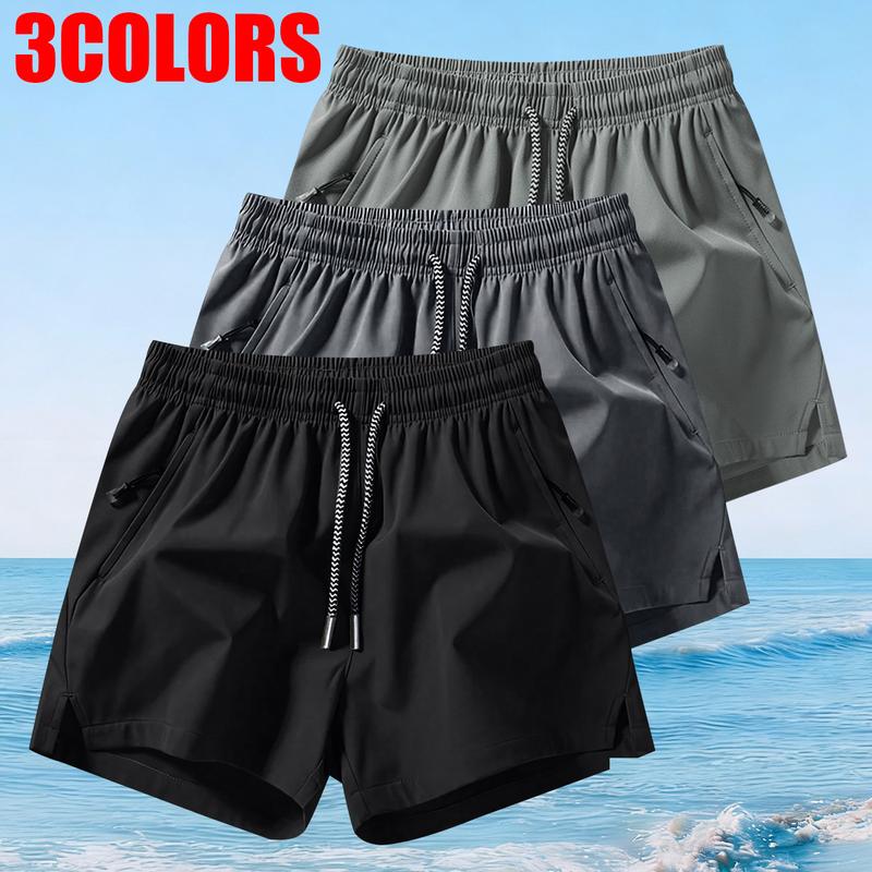 Men's Solid Color Casual Shorts Three-Piece Set, With Zipper Pockets, Summer Fashion Drawstring Sports Shorts, Suitable For Gym And Outdoor Wear