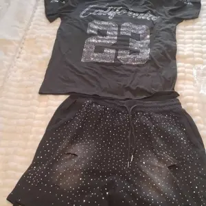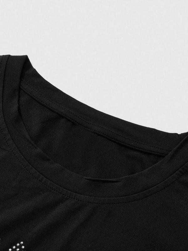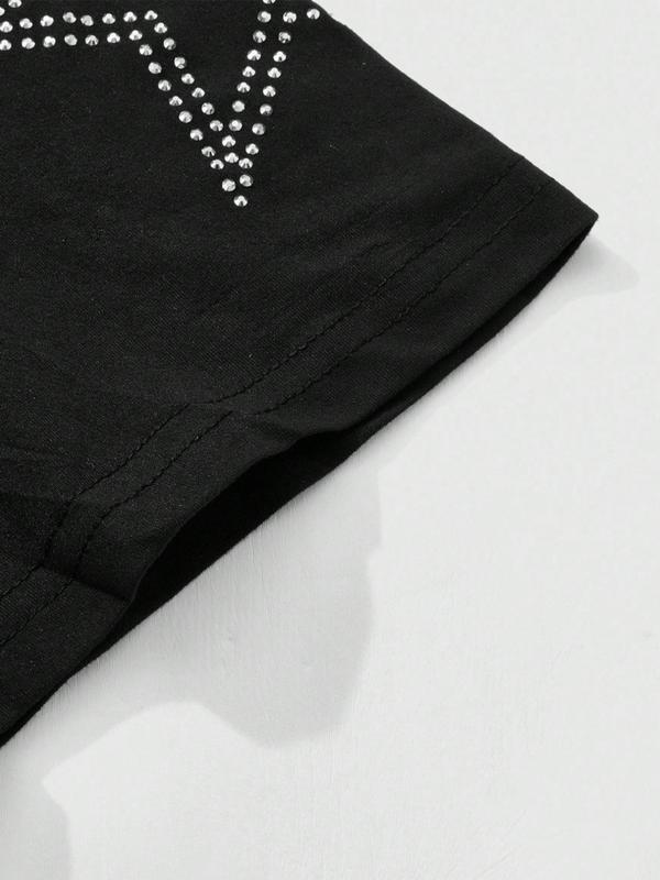 【Rhinestone Details】: The unique rhinestone embellishments on the T-shirt and shorts elevate the look, making it a standout summer set.