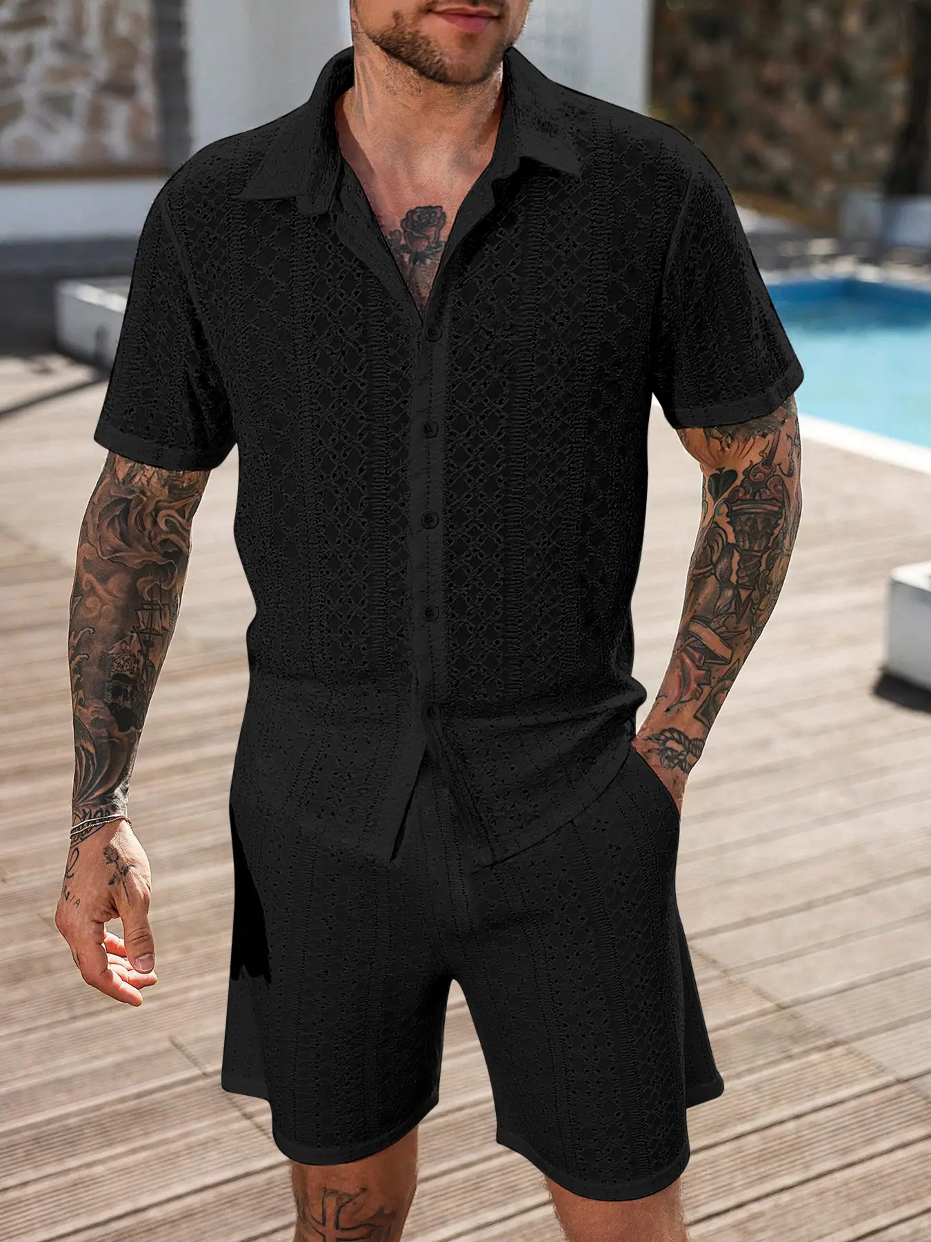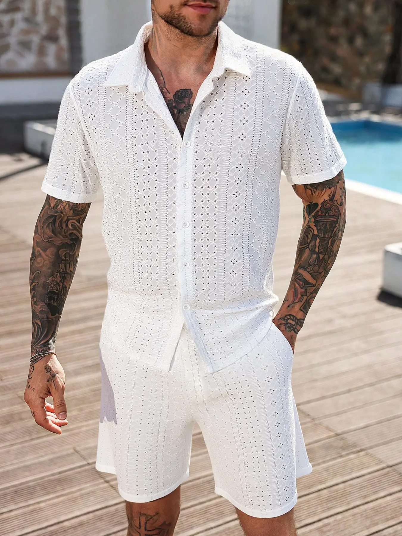 This is a quality made outfit. Super thick so probably not the best idea for vacation but if you're on a cruise ship or at an All-Inclusive where there is consistent AC then it's ideal Lol. Bought for my husband as a vacation outfit.