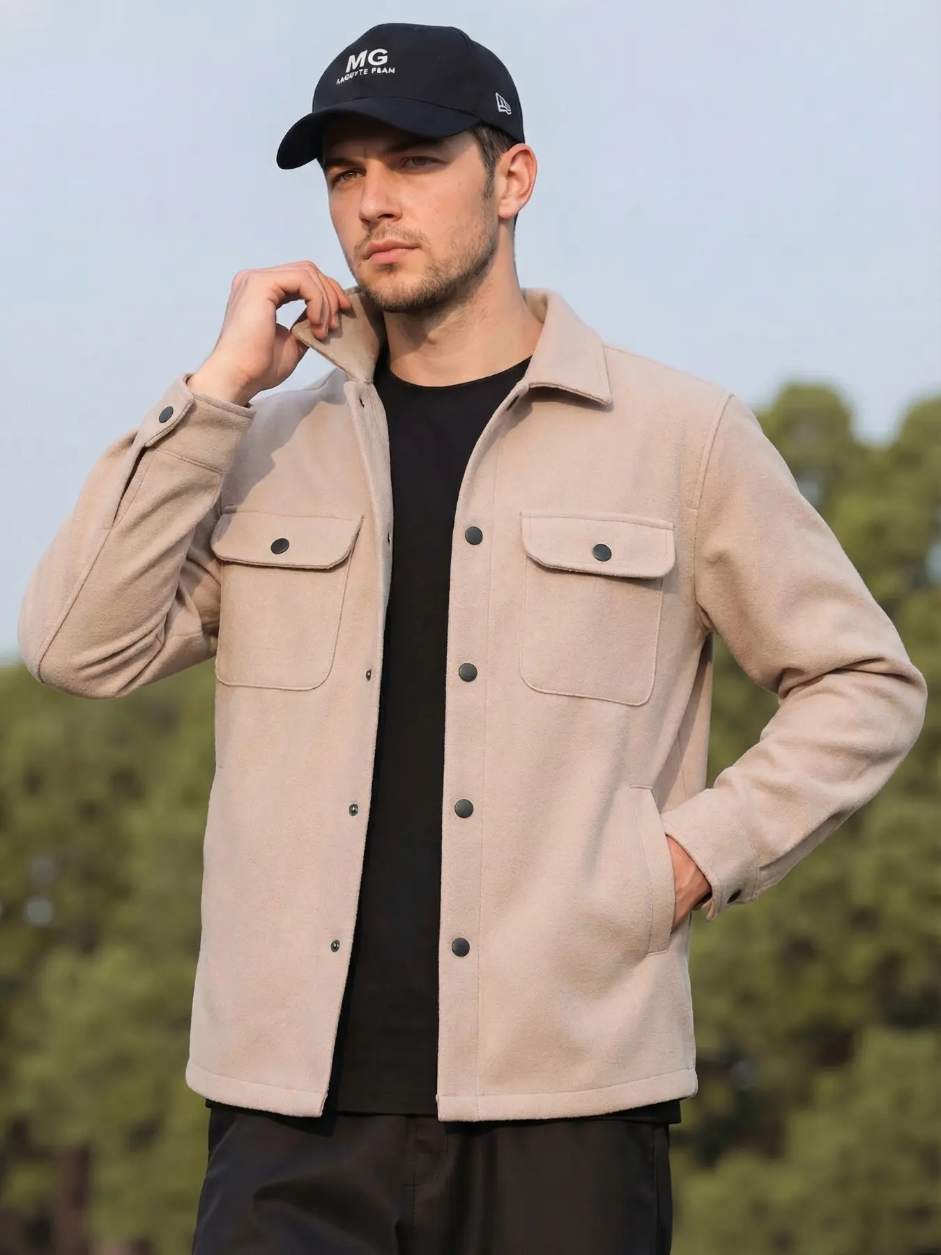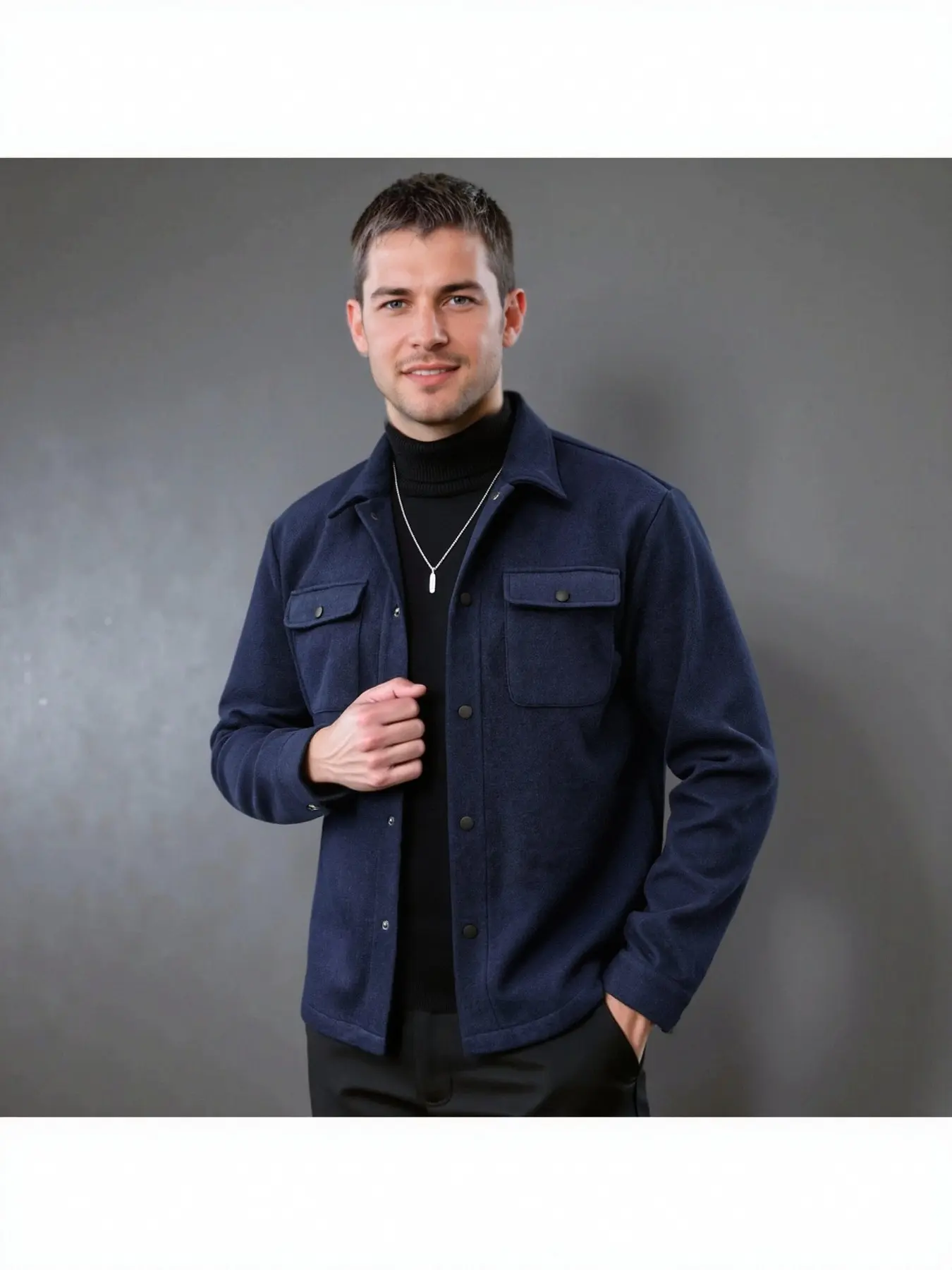 5. Men's Casual Thick Woven Solid Pocket Jacket Coat, Fitted Design for Work & Outdoor, Lightweight for Fall Winter Season