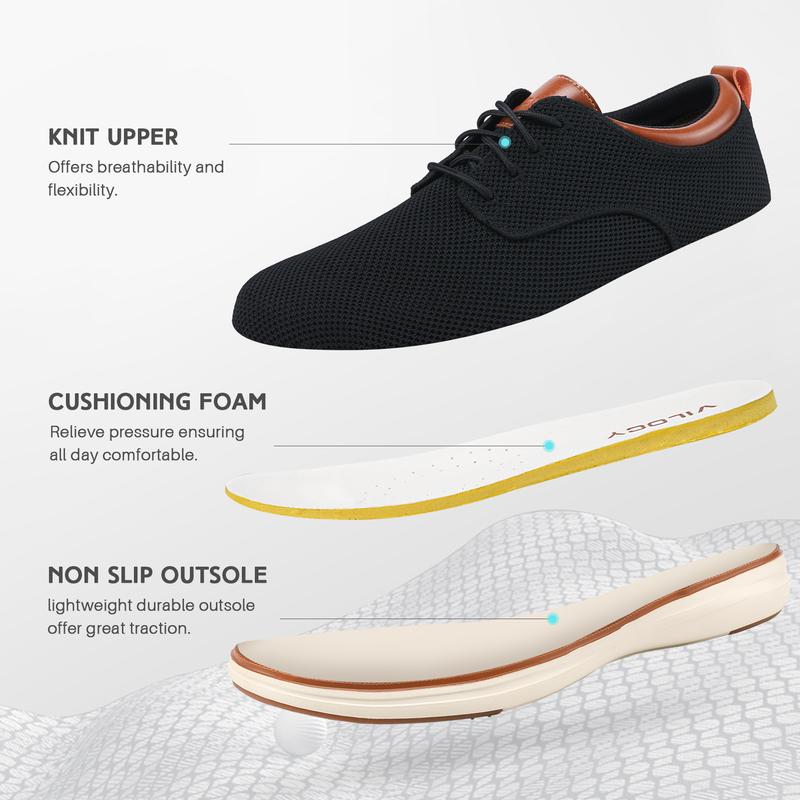 ·【Splicing Knitted Upper】More design sense and perfectly replicates the appearance of dress shoes, giving more breathability, lightweight and comfortable,allowing effective airflow to keep your feet cool and dry, even during outdoor activities.