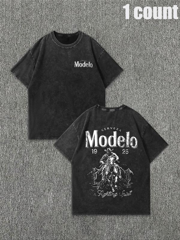 5. Men's Vintage Letter & Cowboy Print Casual Graphic Design Short Sleeve Tee, Casual Loose Retro T-shirt for Daily Wear, Menswear for All Seasons, Men's Graphic Tees