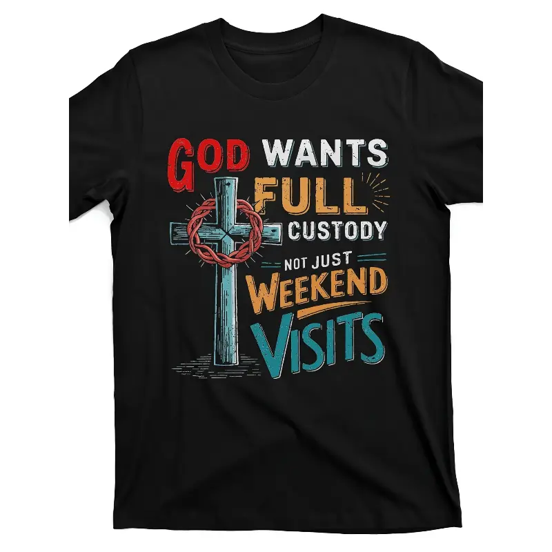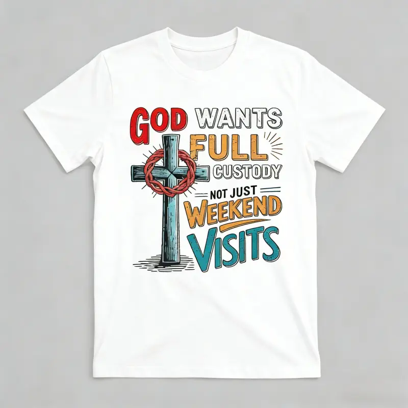 Aesthetic Christian Faith Graphic T-Shirt | Premium 100% Cotton Heavyweight Tee | "God Wants Full Custody" Religious Saying Top | Retro Cross & Thorns Inspirational Apparel | Soft Casual Streetwear Gift for Men & Women