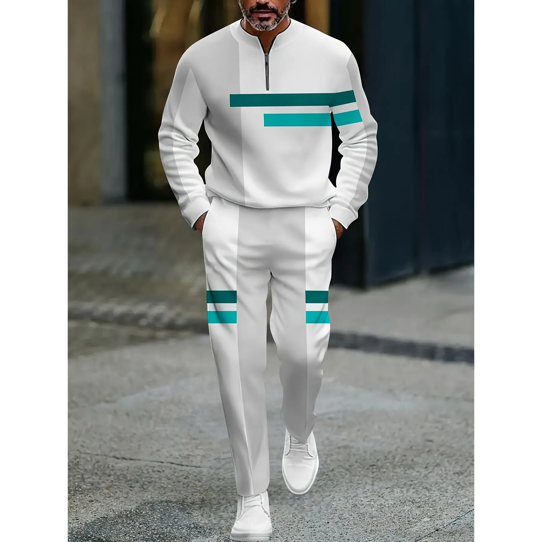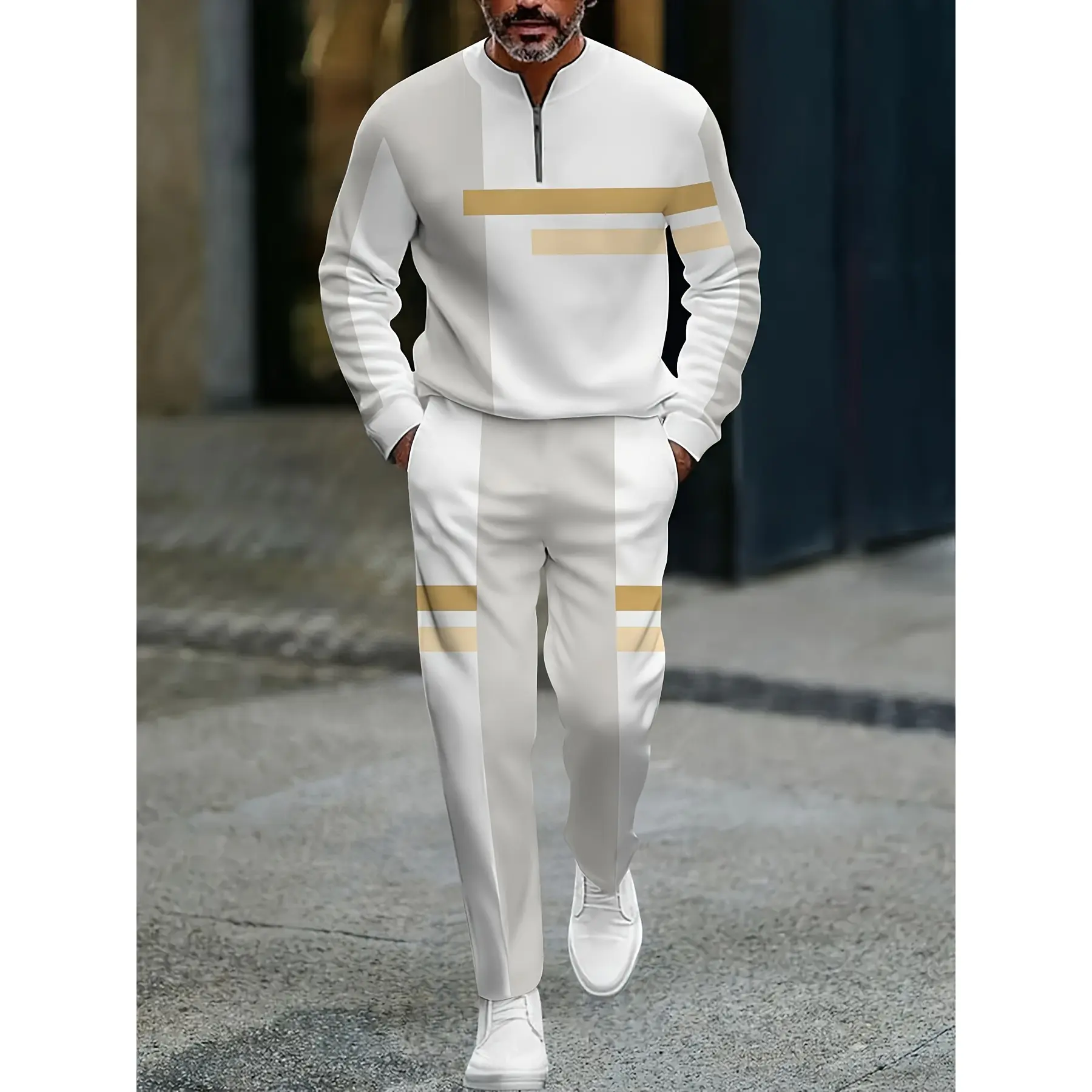 I ordered this for a friend he likes it he had a new pair of shoes that he matched with this outfit and it looks perfect with the shoes he was very happy with it.