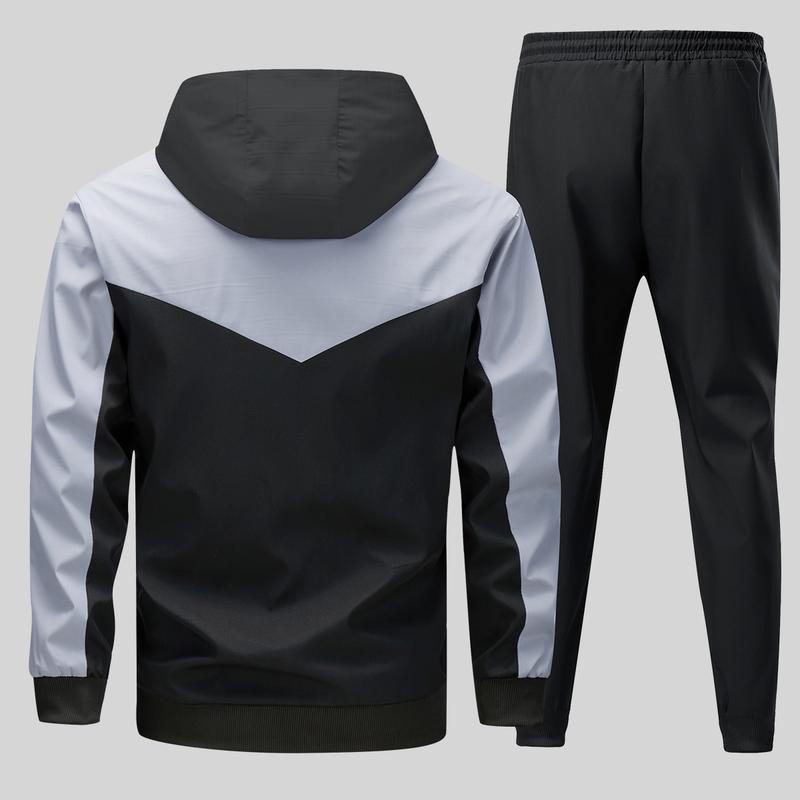 5. Men's Colorblock Casual Hooded Jacket & Jogger Pants Set Machine Washable Trendy All Season Outfit Regular Fit for Daily Leisure Sport Menswear Long Sleeve Clothes Suits.