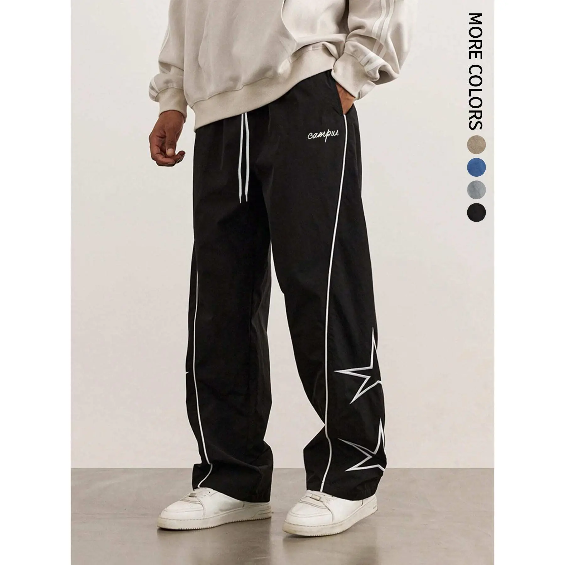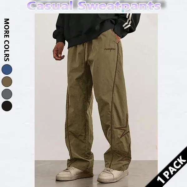 These star pattern embroidery design trousers are perfect for gym wear and streetwear. They offer a comfortable fit, ideal for fall outfits. The athleisure style blends with athletic clothes, making them suitable for workouts or casual outings. Stay stylish and functional with these bottoms.