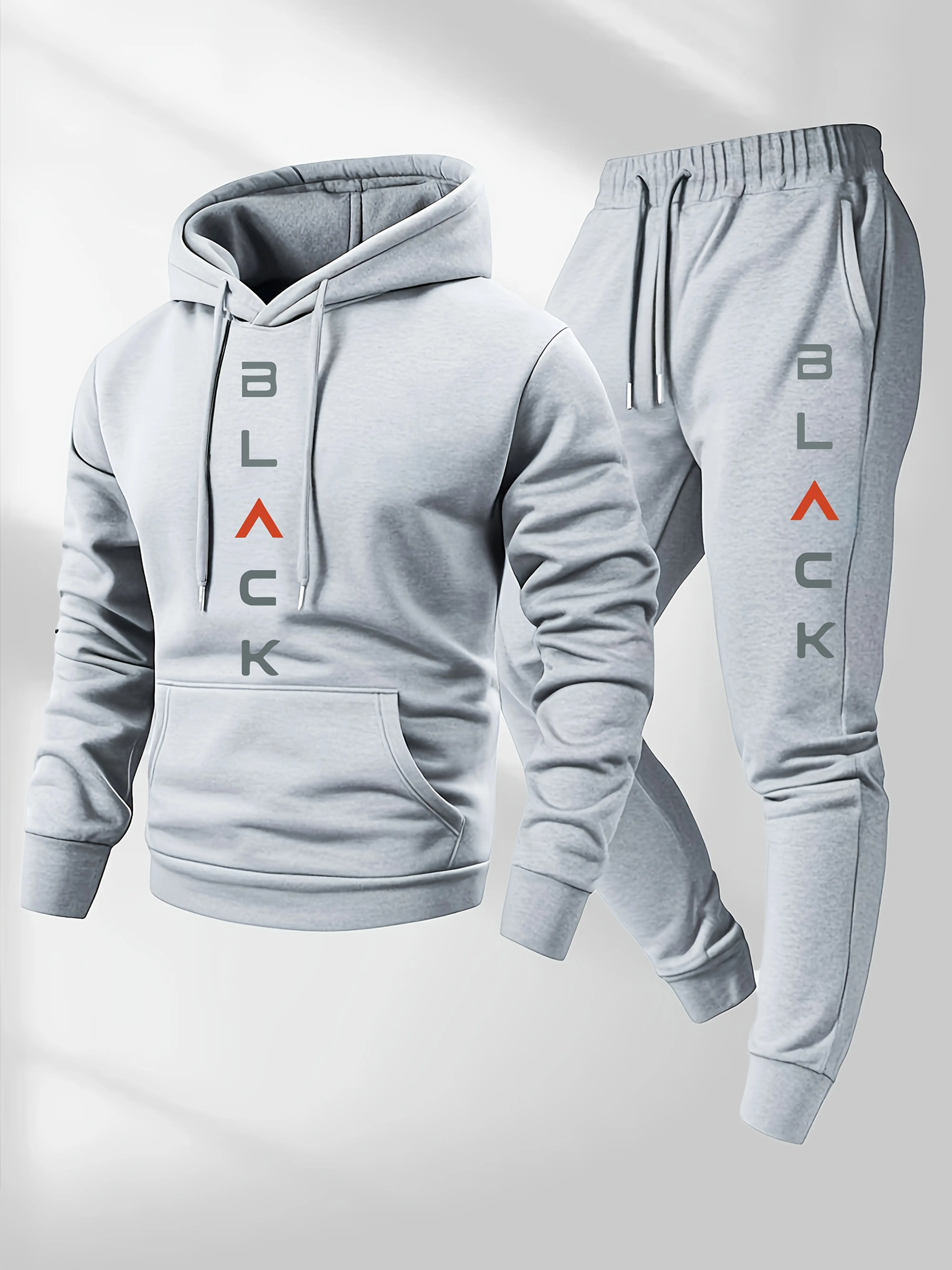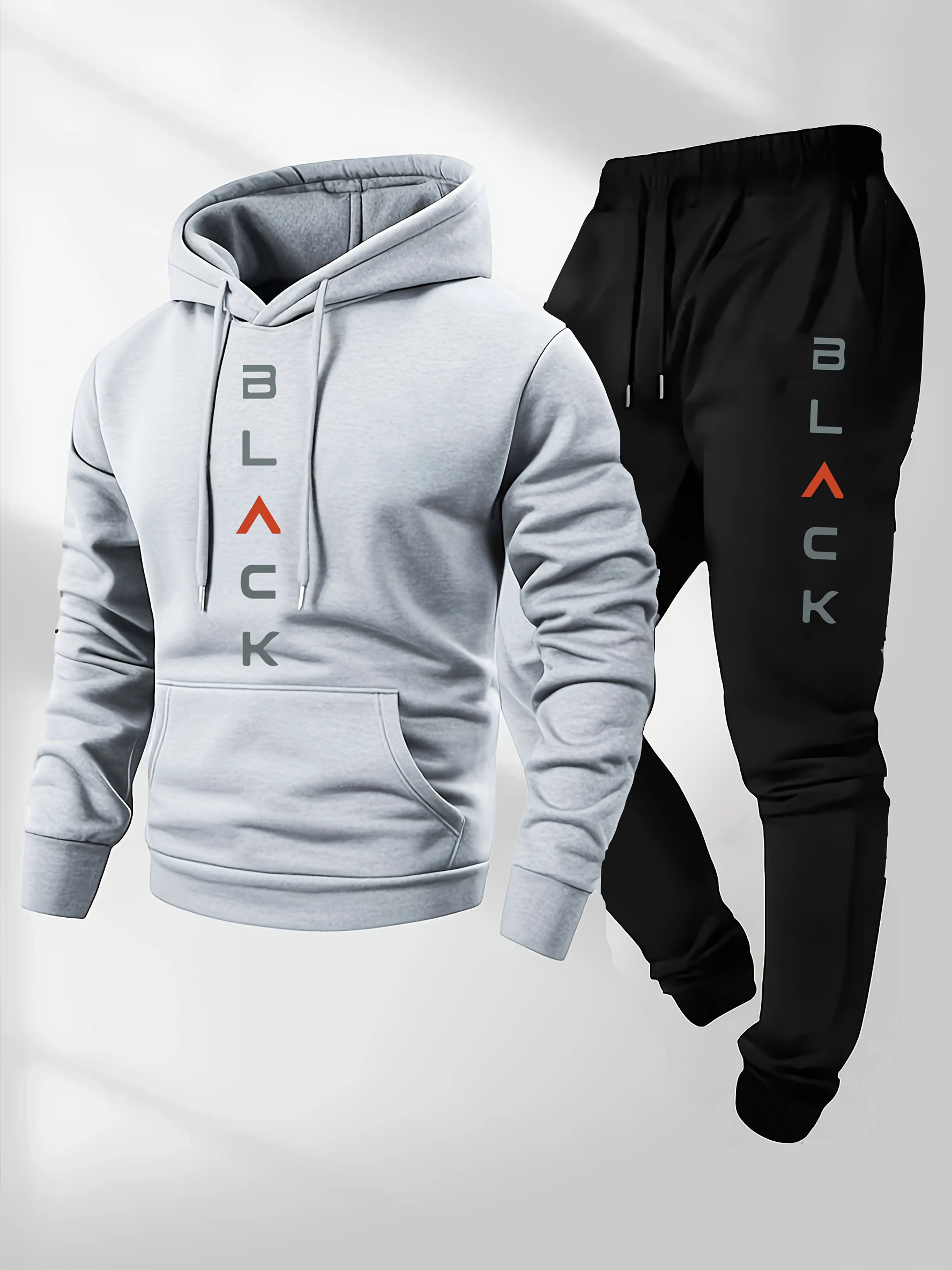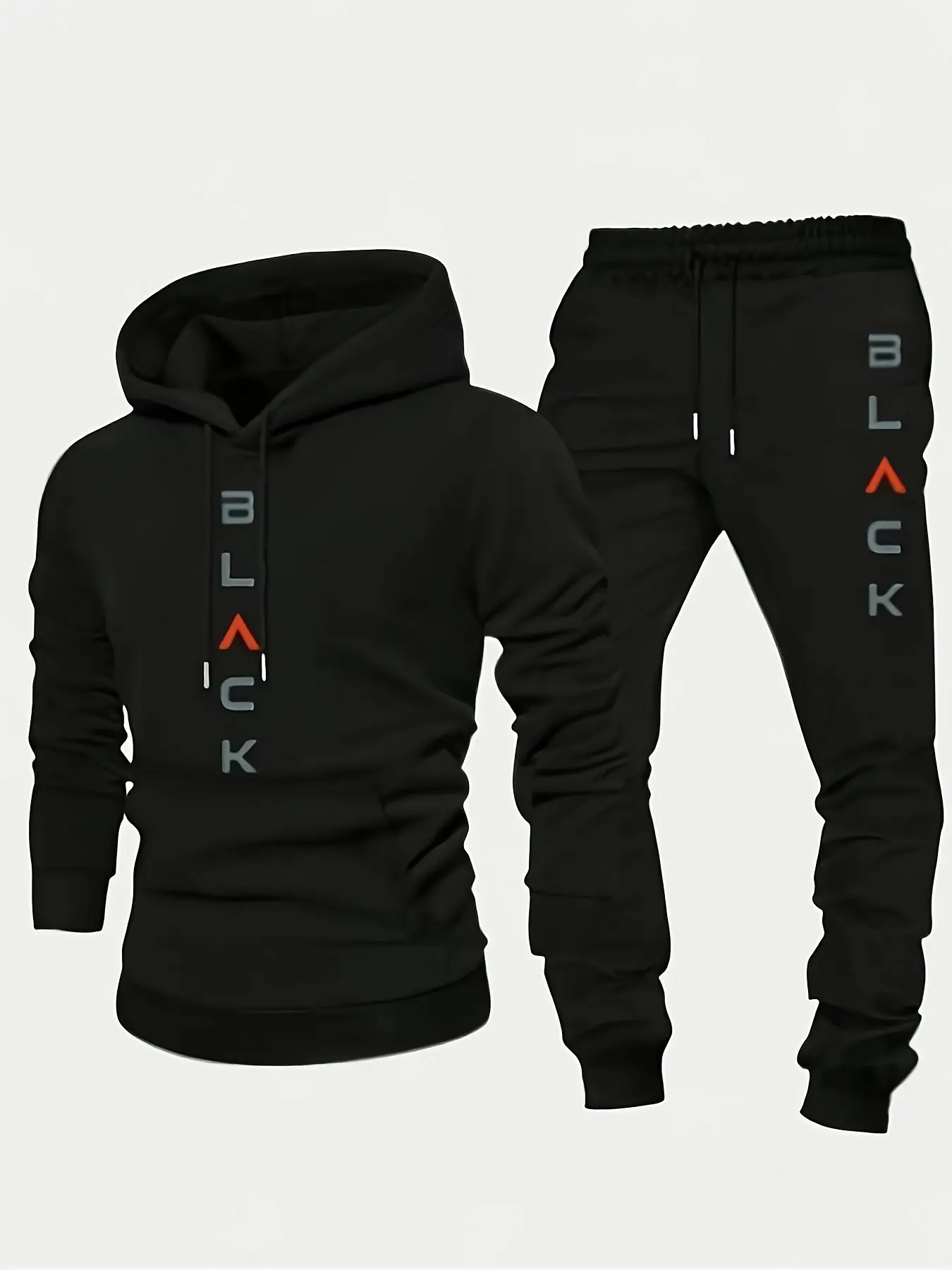 ✨ Elevate Your Style ✨ This men's outfit includes a hooded sweatshirt and matching joggers. The sweatshirt features a bold "BLACK" print, adding a sporty touch. The joggers complement the hoodie, ensuring a cohesive look. Ideal for fall and winter, this set offers cozy comfort. Perfect for casual streetwear and sporty outfits.