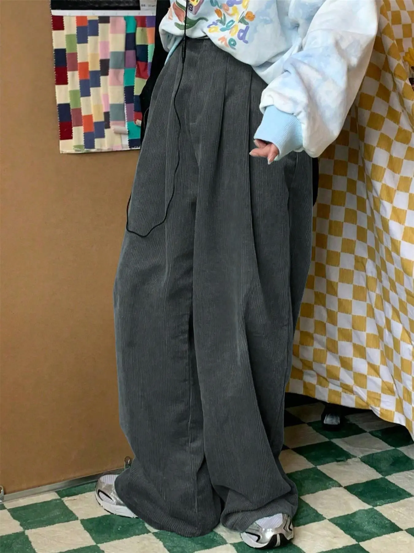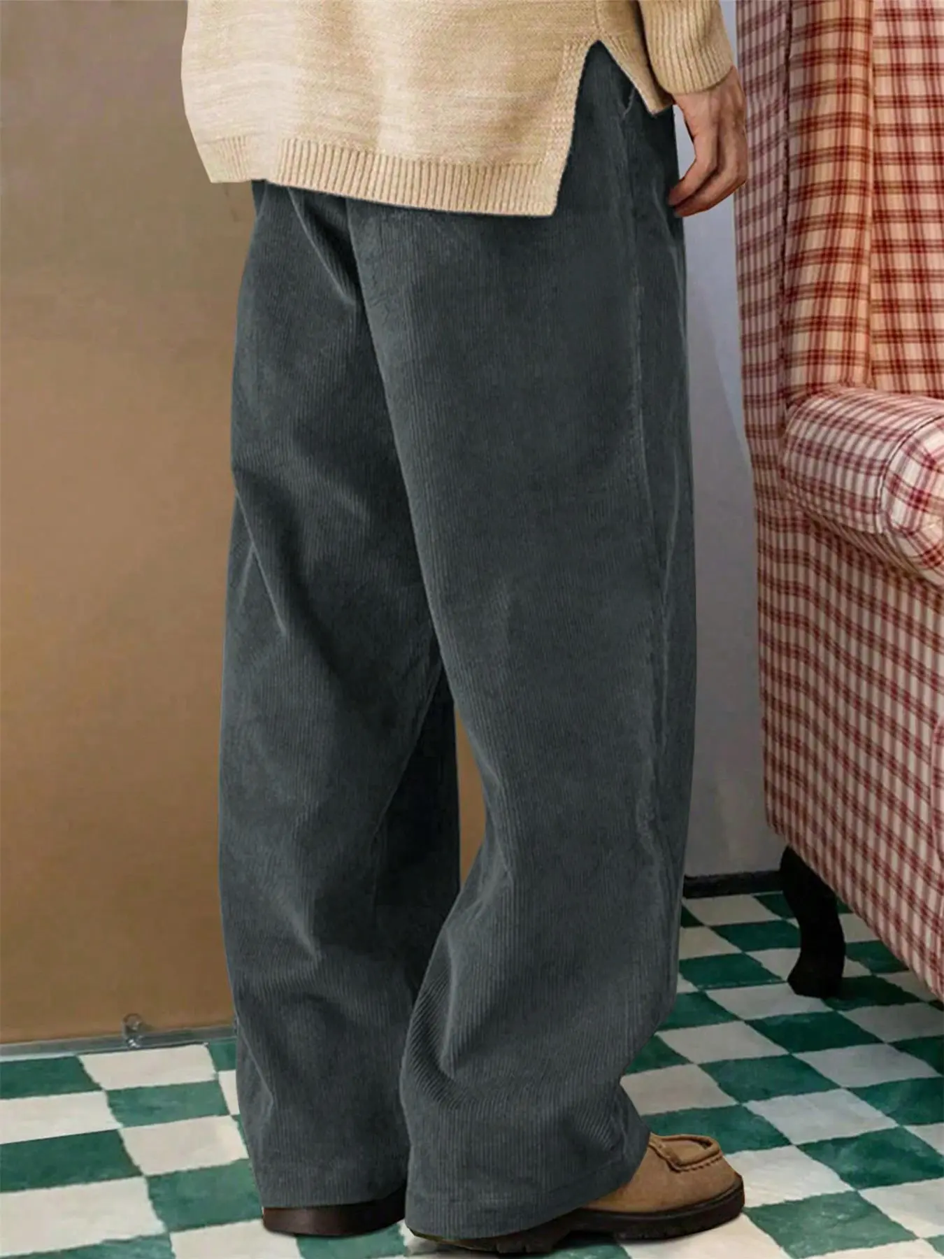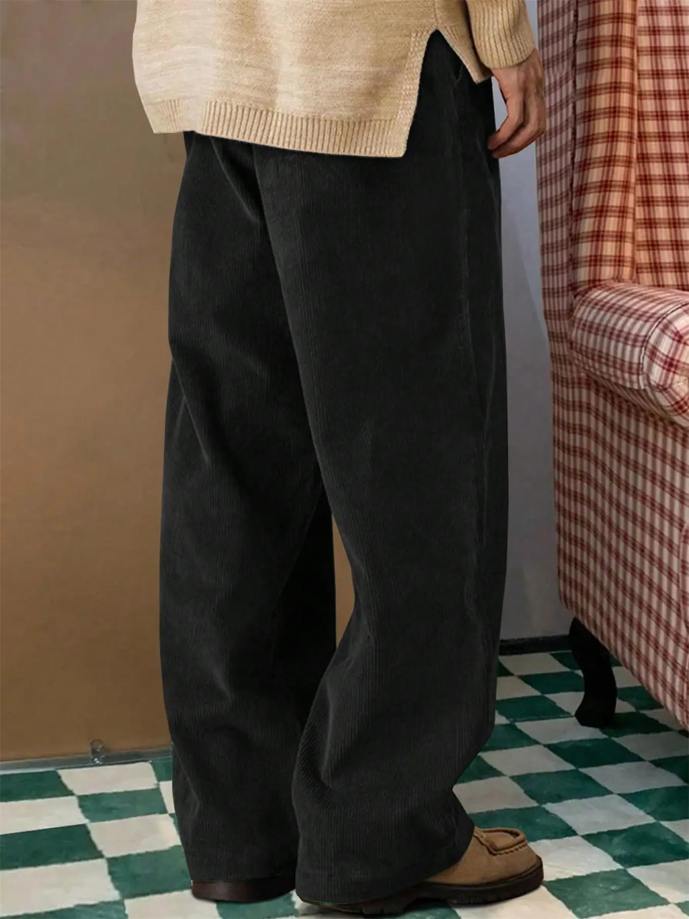 Men's Solid Color Corduroy Pants Loose Fit Straight Leg Side Pocket Casual Slant Pocket Basic Bottoms Retro Classical Ribbed Elastic Waist Micro Pleated Dress Pants Soft Easily Match Fall Winter Daily Lounge Pants Clubwear Party Outdoor Work as A Gift