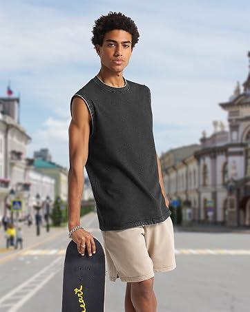 ·Vintage-Washed Cotton: These sleeveless workout shirts are made from vintage-washed cotton. The natural fabric prevents sweat buildup, keeping you cool and comfortable. 🌿