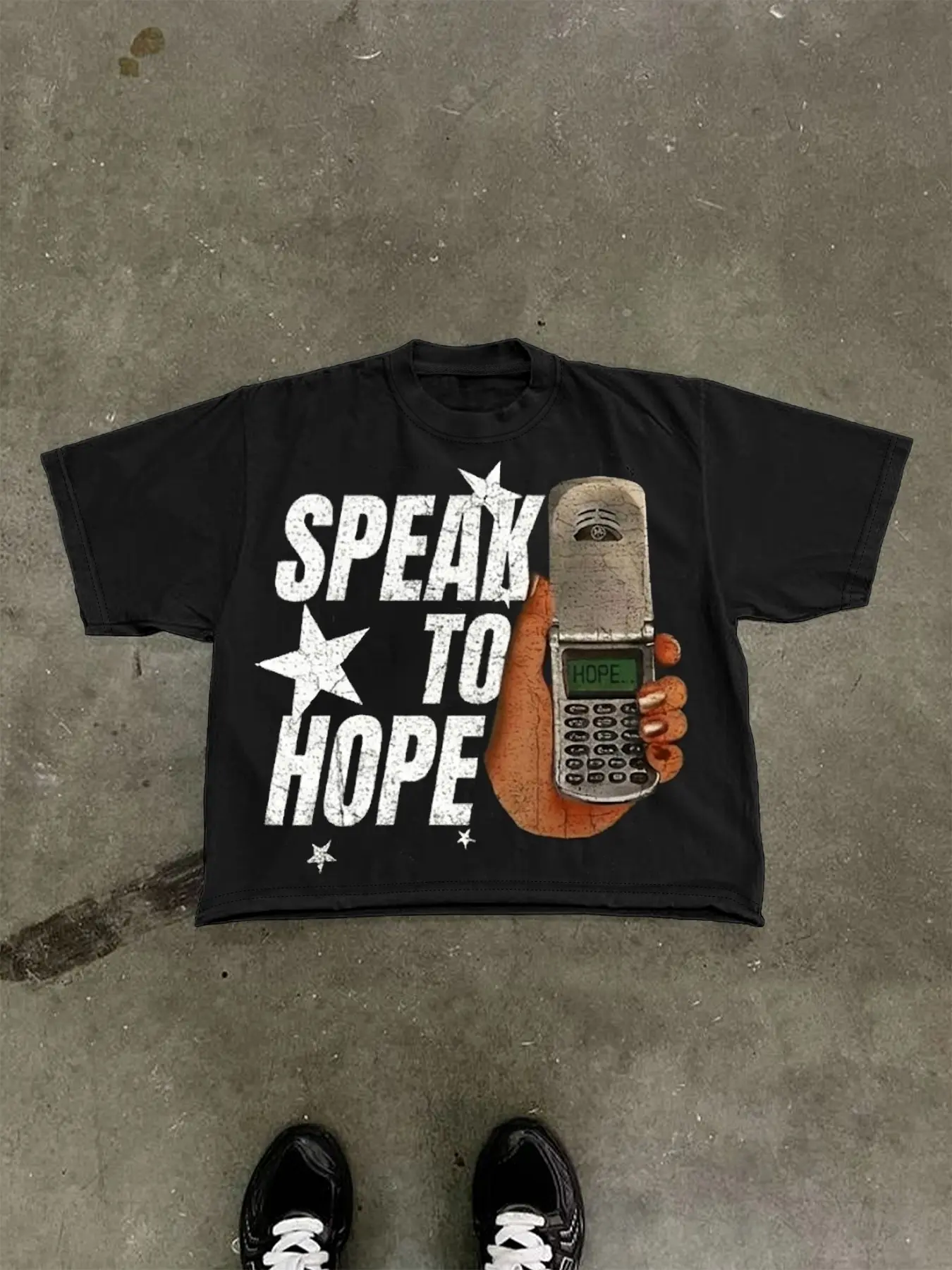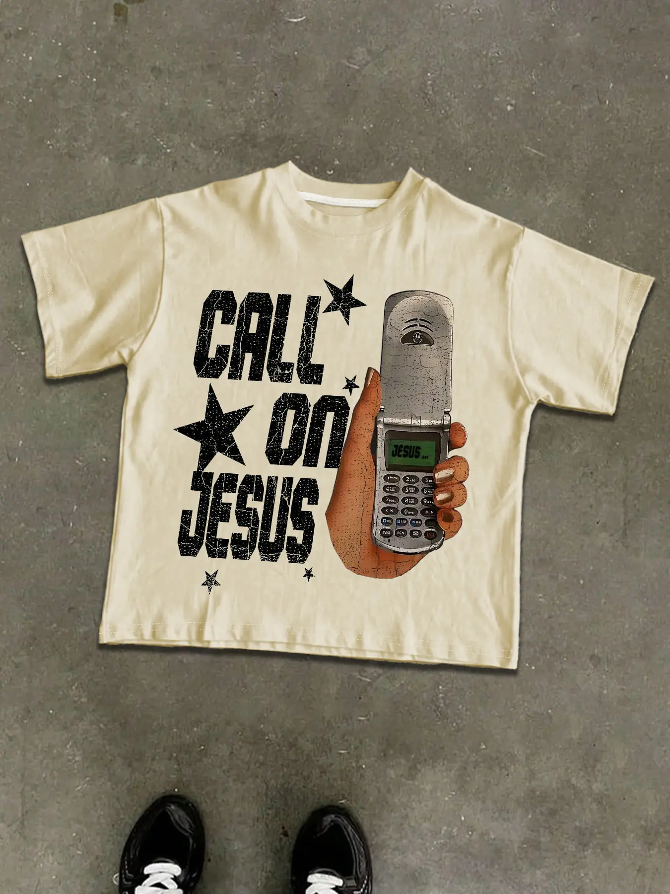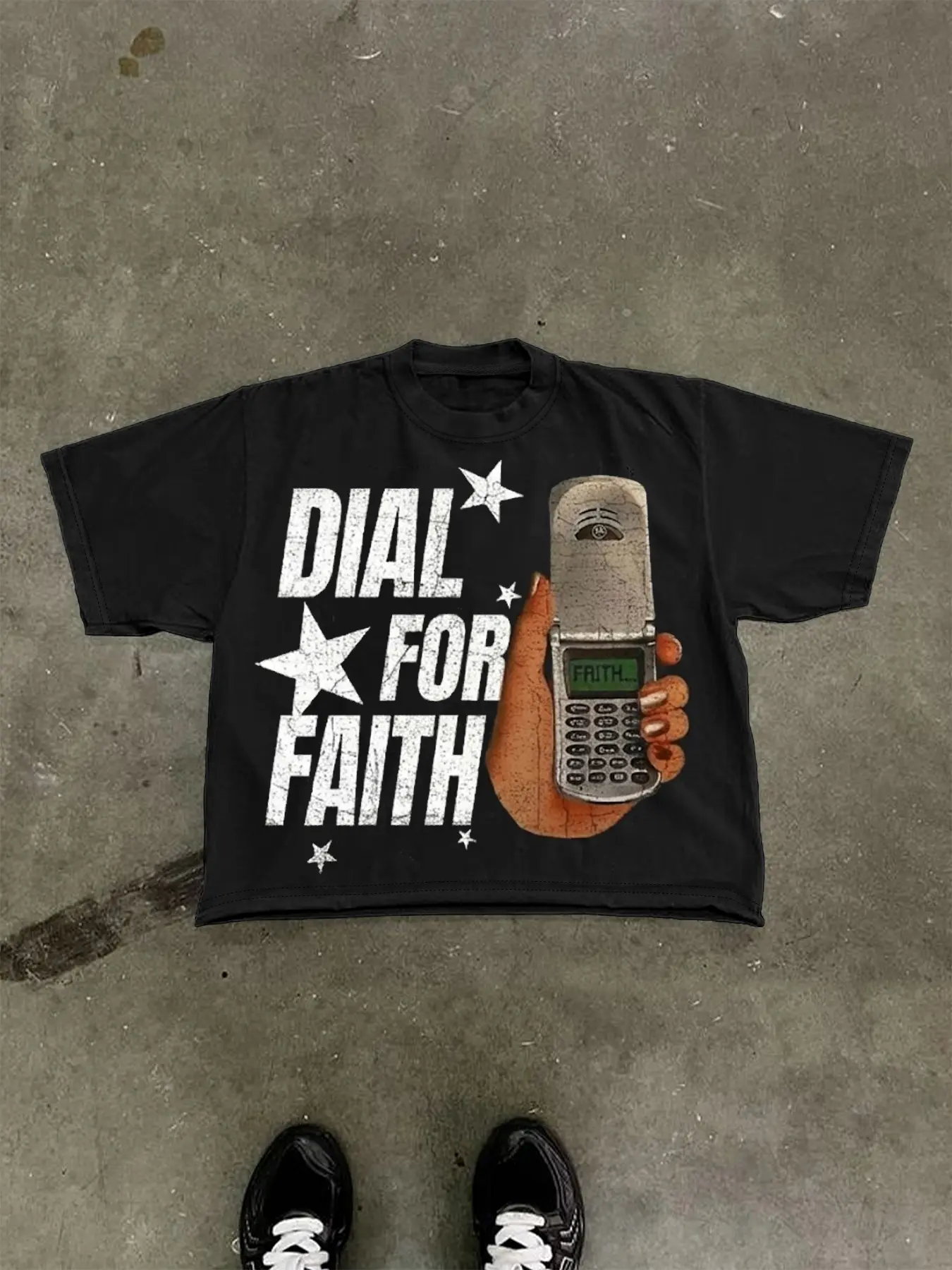 only photo I have is of me and my bf so sorry about that ,the shirt did take a little big longer then expected to arrive however I was not disappointed when it arrived. It’s not cheaply printed on the shirt it feels nice and it’s like a box cropped shirt which I really enjoy for my style:)
