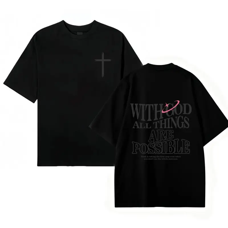 5. Aesthetic Christian Jesus 'With God All Things Are Possible' T-Shirt | Premium 100% Cotton Heavyweight Loose Fit Tee | Matthew 26:41 Bible Verse Faith Apparel for Men & Women | Easter 2026 Religious Gift | Vintage Streetwear Graphic Top