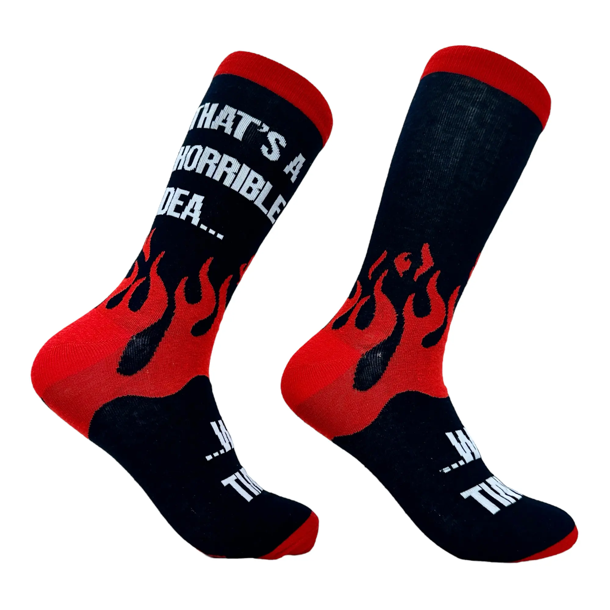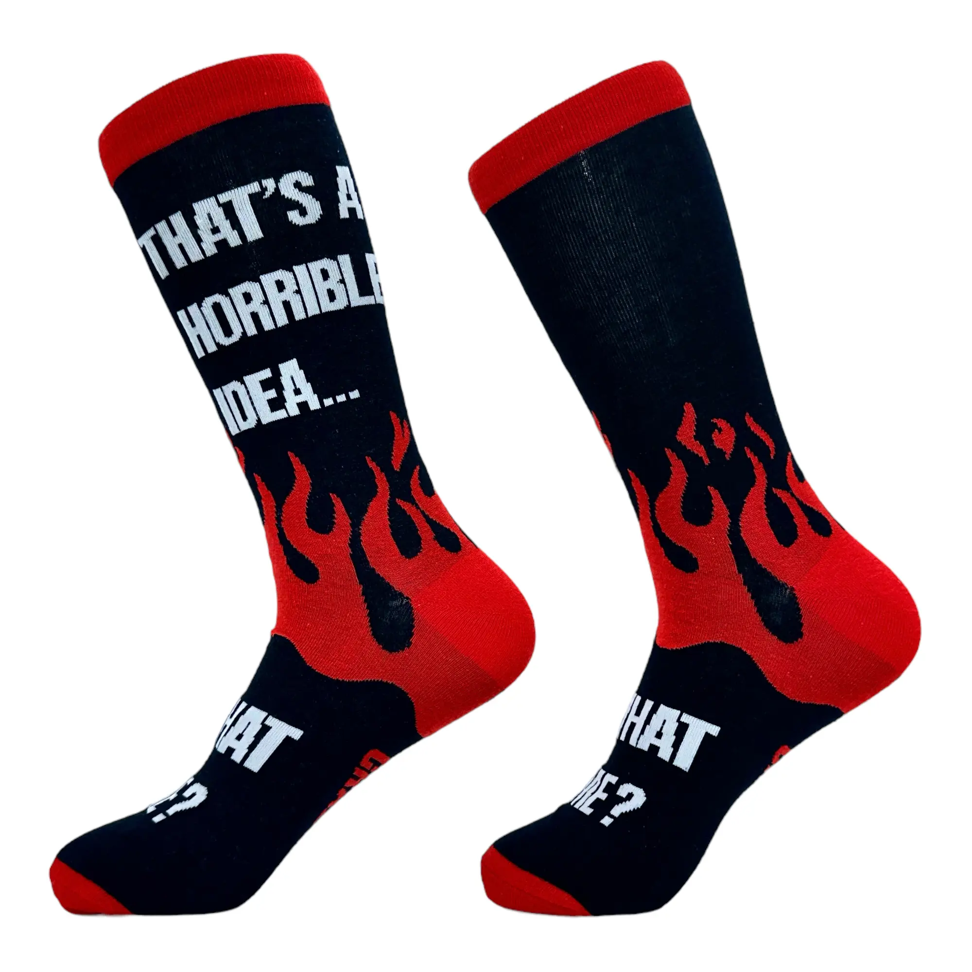 This is a Mens (9-11) Black - Horrible Idea Soft Comfortable Funny Graphic Socks sold by Crazy Dog T-Shirts.