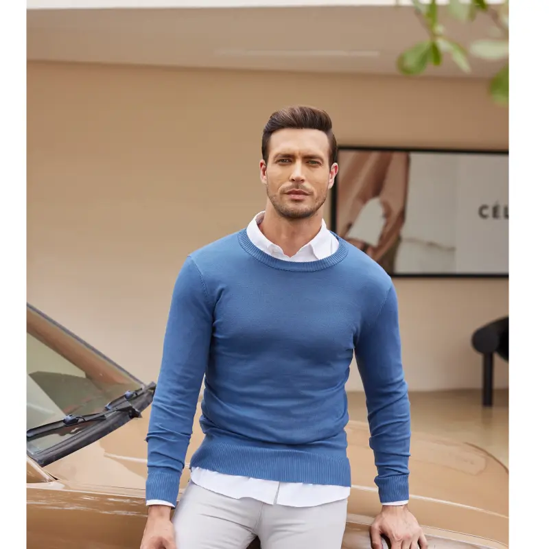 5. COOFANDY Fall Outfits Luigi Limited Time Clearance Men's Crew Neck Sweater Slim Fit Lightweight Sweatshirts Knitted Pullover gift christmas Jeans Long (Only the crew neck sweater is for sale)