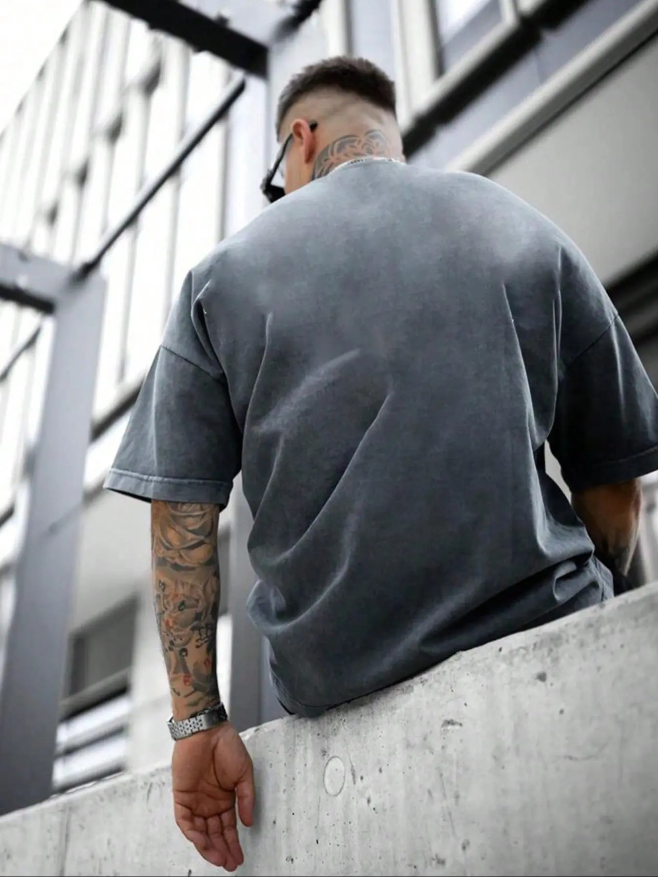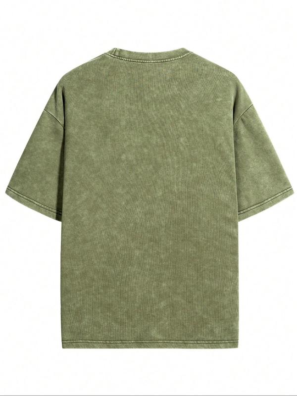 Got this t shirt for my boyfriend. He typically wears a slim fit and this is a bit more of a boxy style but he loved it. The color is a army green acid wash and looks super nice. It is mostly cotton and can shrink if dried so be aware.