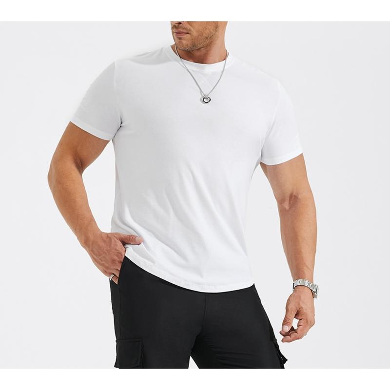 These Men's Cotton Hip Hop T-Shirt feature short sleeves, a slim fit design, and a basic yet stylish longline cut. They are non-iron, which means that you won't have to worry about ironing them after washing. Unique "X" stitching design under the collar, making it stand out from other basic T-Shirts.