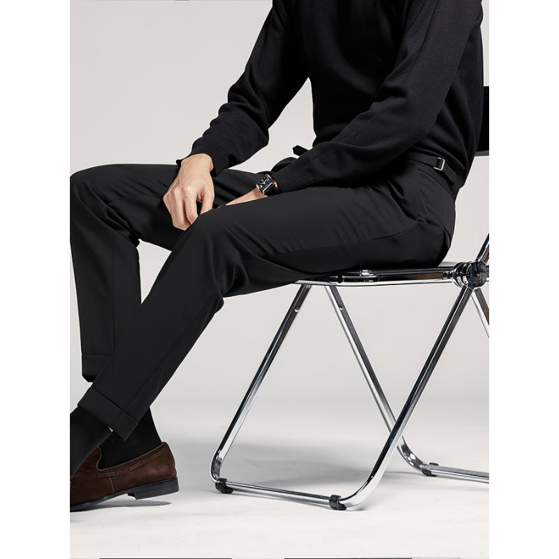 5. Men's waist less short black pants - mid waist loose fit, hanging fabricBusiness casual pants, suitable for all seasons, made of fashionable men's elastic fiber material. Menswear Spandex