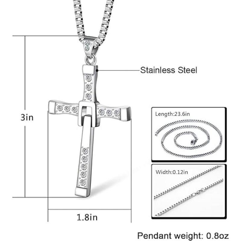 Cross Necklace for Men, Cross Pendant Necklace Stainless Steel Chains Sterling Silver Necklace Men's Cross Chain Jewelry Link Chain for Boys Fast and Furious