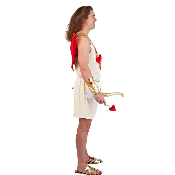 Despite the troubles love can cause, you'll be welcome wherever you go when you're dressed in this Cupic costume. Which is nice cause this is a costume you'll be able to wear again and again! The one-shouldered toga is dripping with gold ribbon and red hearts and has attached red wings on the back. And while we get that the free-form toga was all the rage in ancient times, we wanted our Cupids to feel more at ease. That's why our designers threw shorts on this costume. So you can focus on your aim without worrying about wardrobe malfunctions.