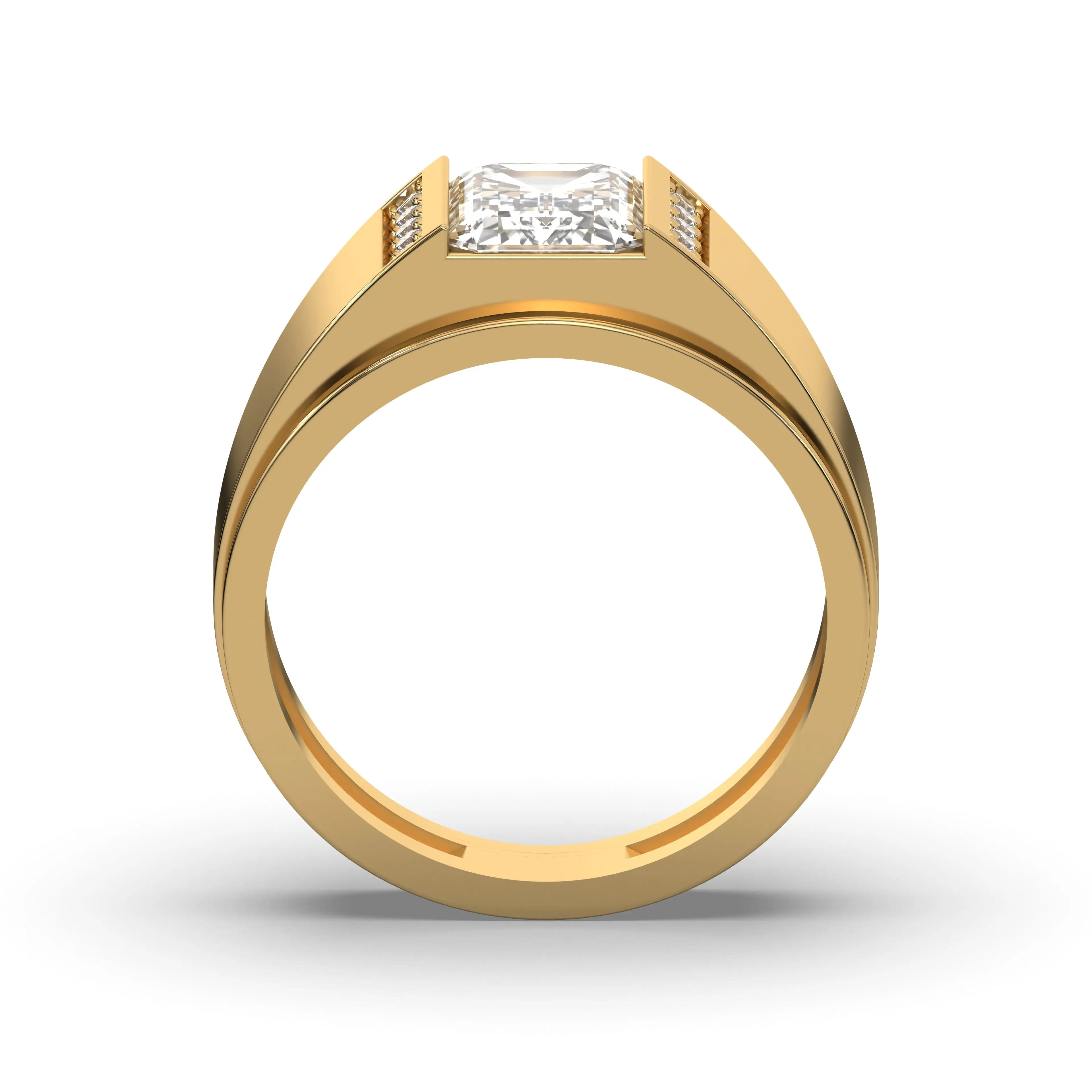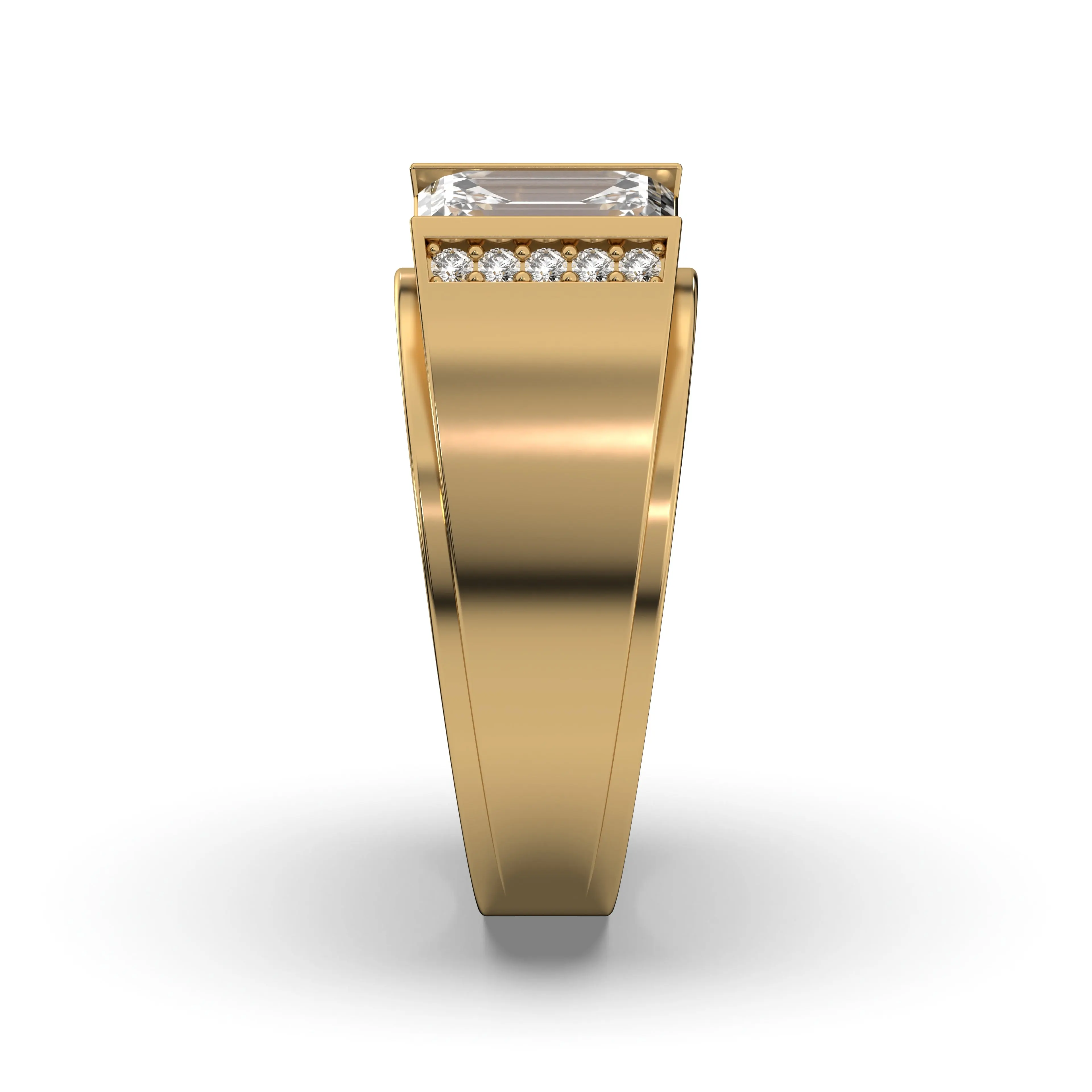 Elevate your style with Frost NYC’s Men’s Yellow Gold Lab Diamond Emerald Cut & Round Diamond Ring—a bold fusion of luxury, precision, and masculine elegance. Designed for those who appreciate sophisticated contrast and standout brilliance, this ring combines the clean geometry of an Emerald Cut diamond with the radiant sparkle of Round Brilliant diamonds, all set in rich yellow gold for a powerful, high-end look.