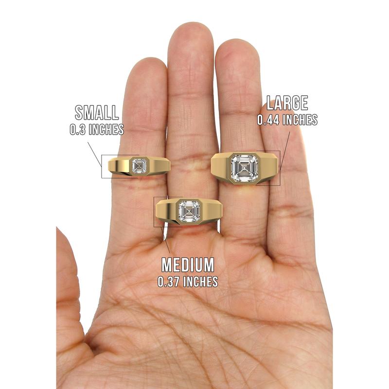 10K/14K Men's Yellow Gold Lab Solitaire Diamond Asher Cut Diamond Ring. These rings are fully customizable, so you can pick your gold purity and size above. Diamond quality is D-F Color and VVS Clarity. Once you selected your purity and size, you can see the adjusted carat weight, gram weight below the price.