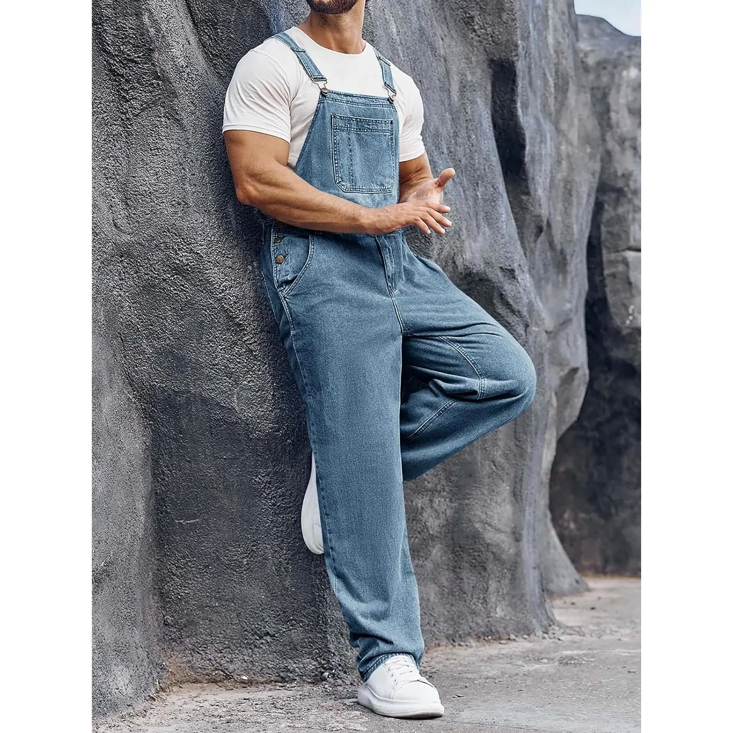 Runcati Men's Fashion Casual Denim Bib Overalls