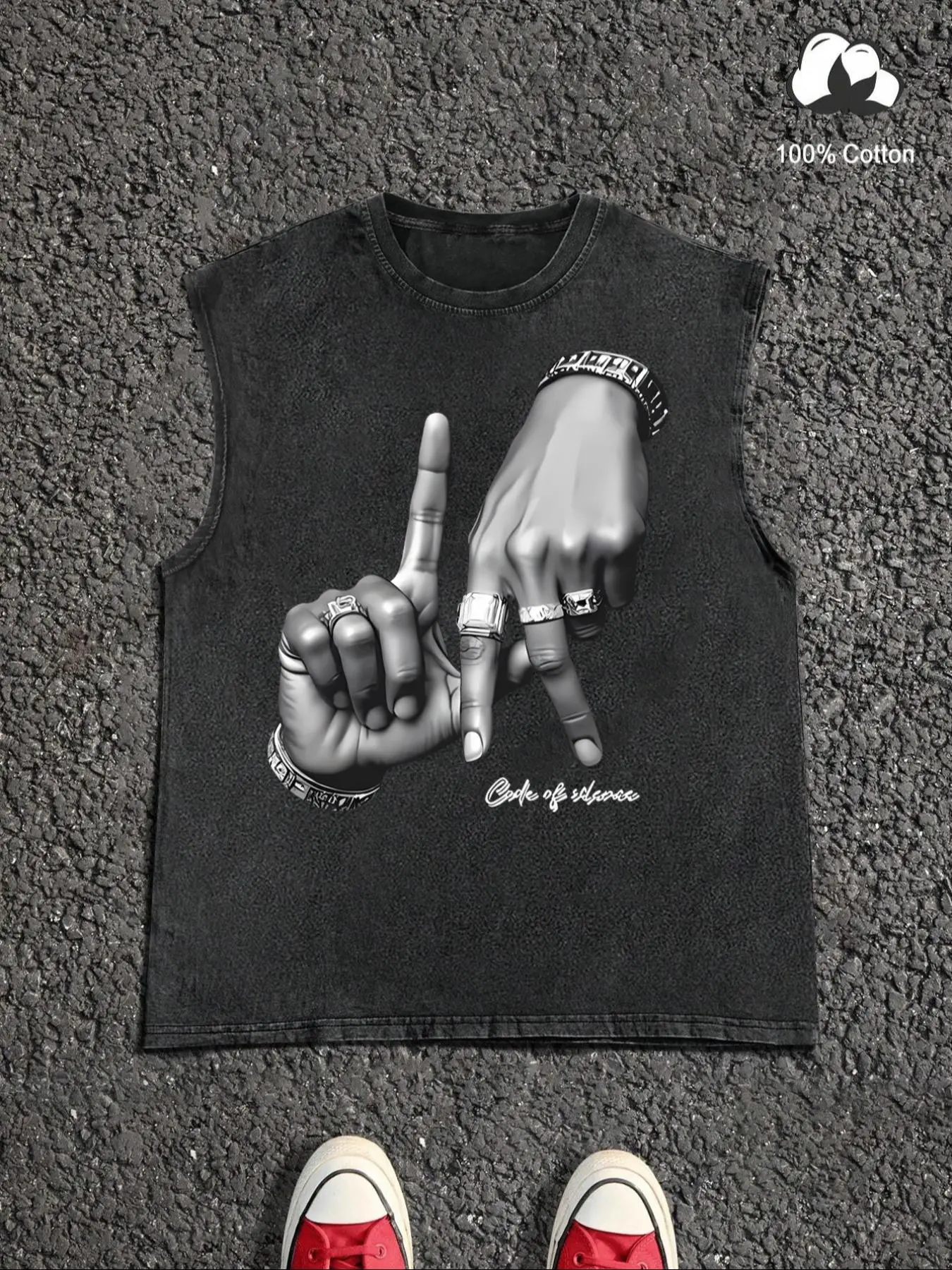 Personality gesture print, the trend attitude of sleeveless vest #SleevelessVest, #TrendyPrint #TikTokShopBlackFriday #TikTokShopCyberMonday #spotlightfinds