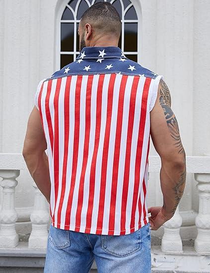 Inspired by classic 1980s denim culture, this sleeveless jean vest blends retro attitude with iconic American flag elements. The bold stars and stripes design adds personality while staying timeless.