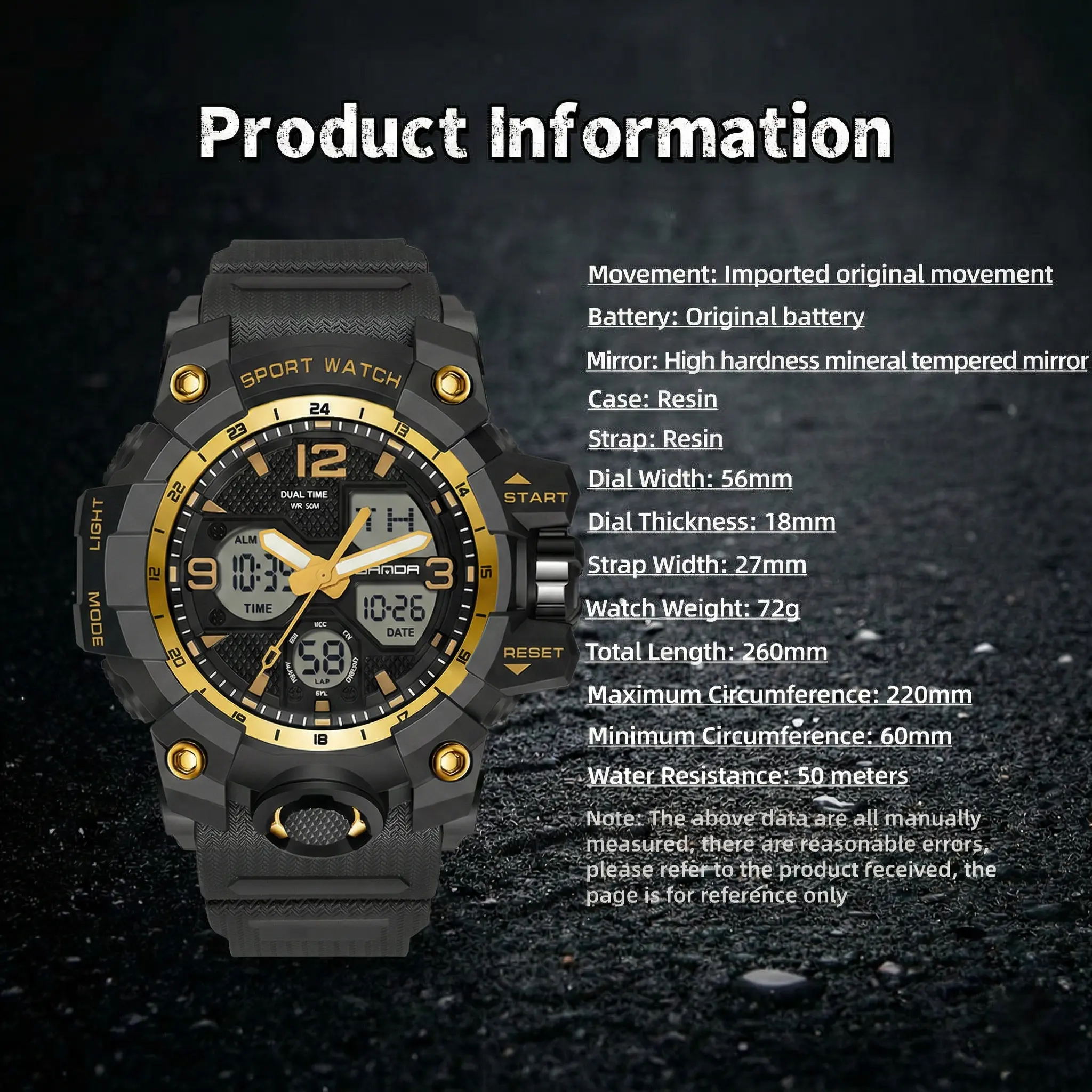 ·Creative Design: 56*52mm double display large dial with clear hands for easy time reading. Stylish and trendy color combination with a strong visual impact.