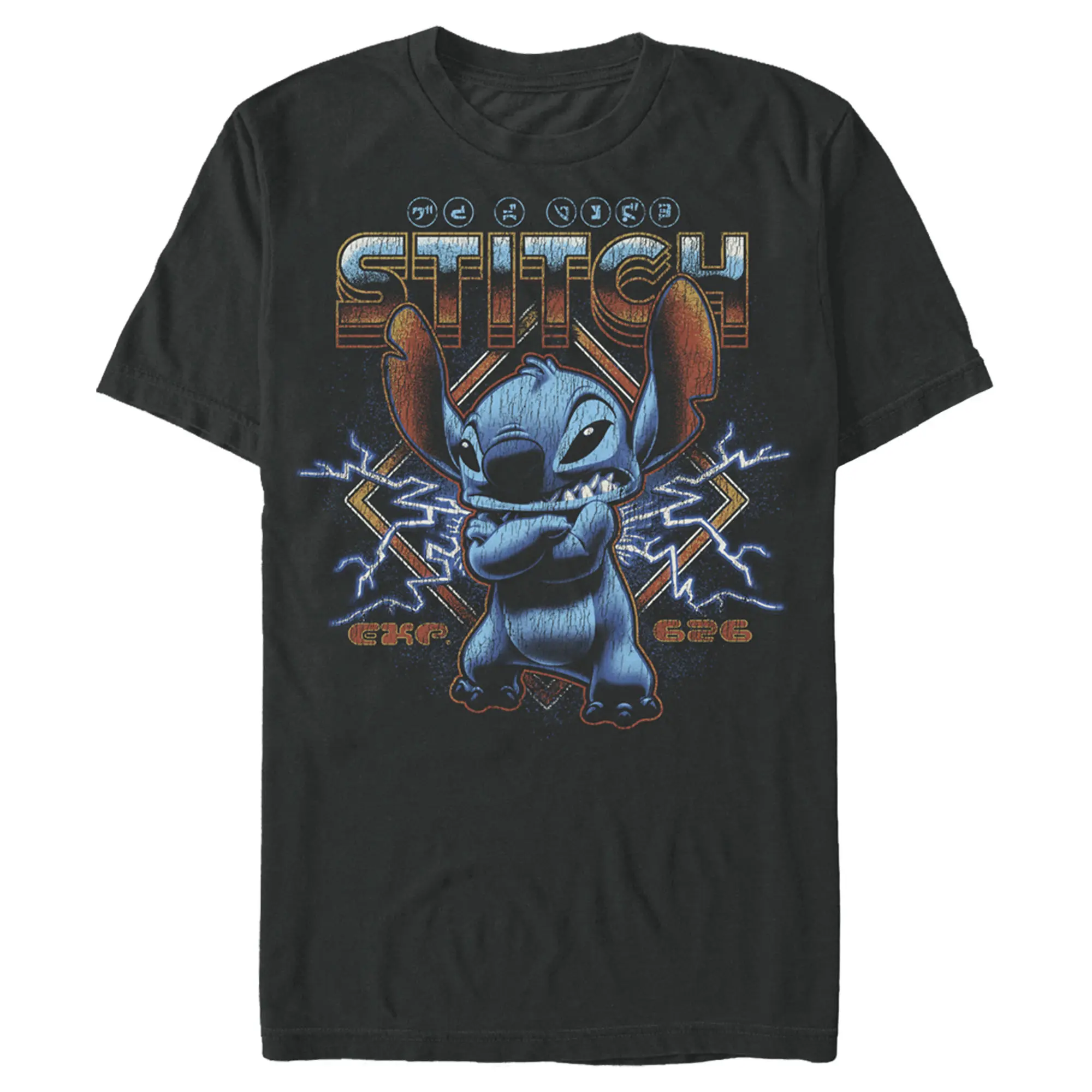 Strut your stuff with this stylish new everyday men's t-shirt that is perfect for every occasion! Featuring a grumpy-looking Stitch printed across the front with a thunder in the background and his name above in distressed lettering.