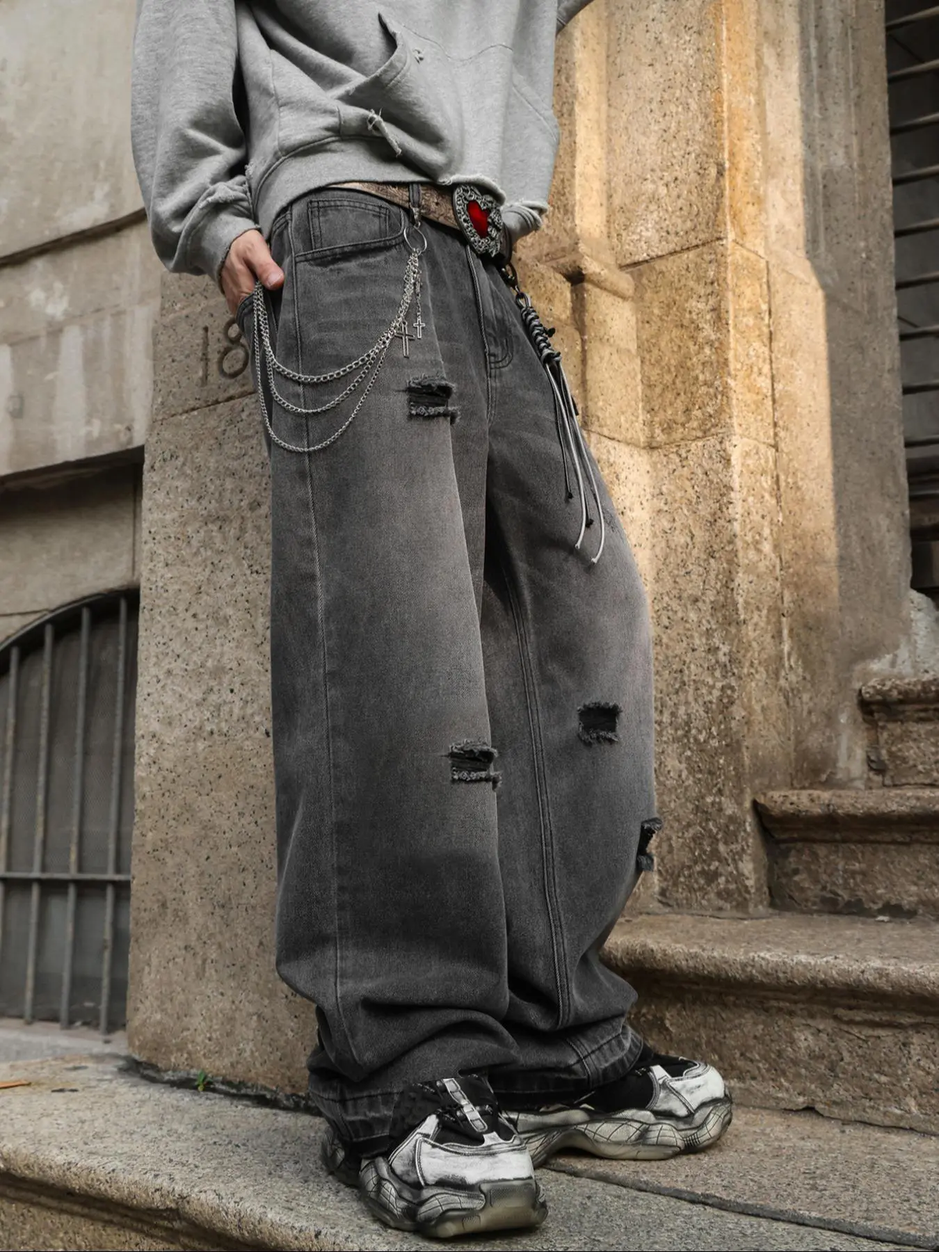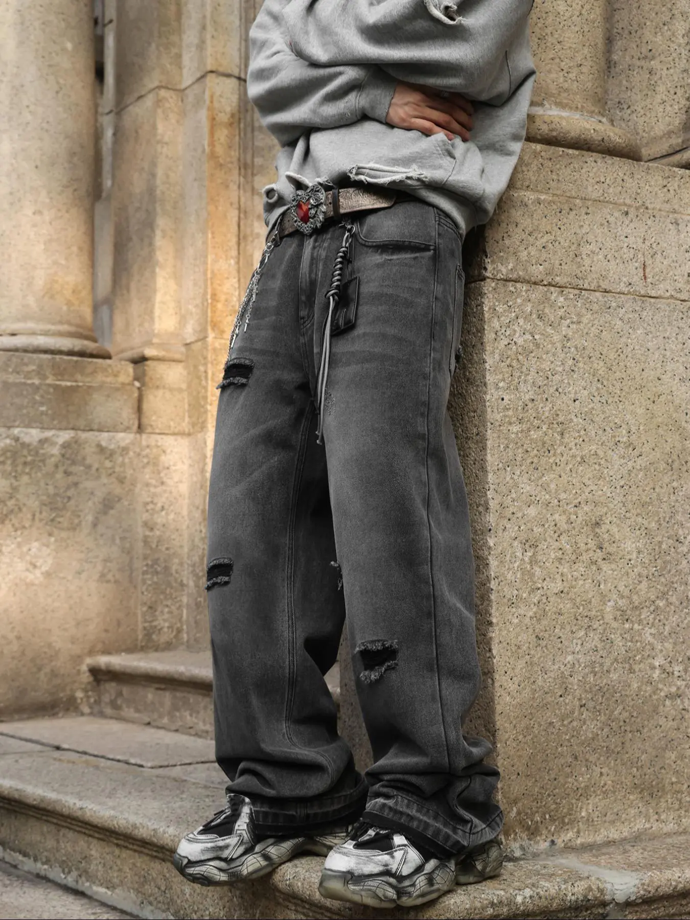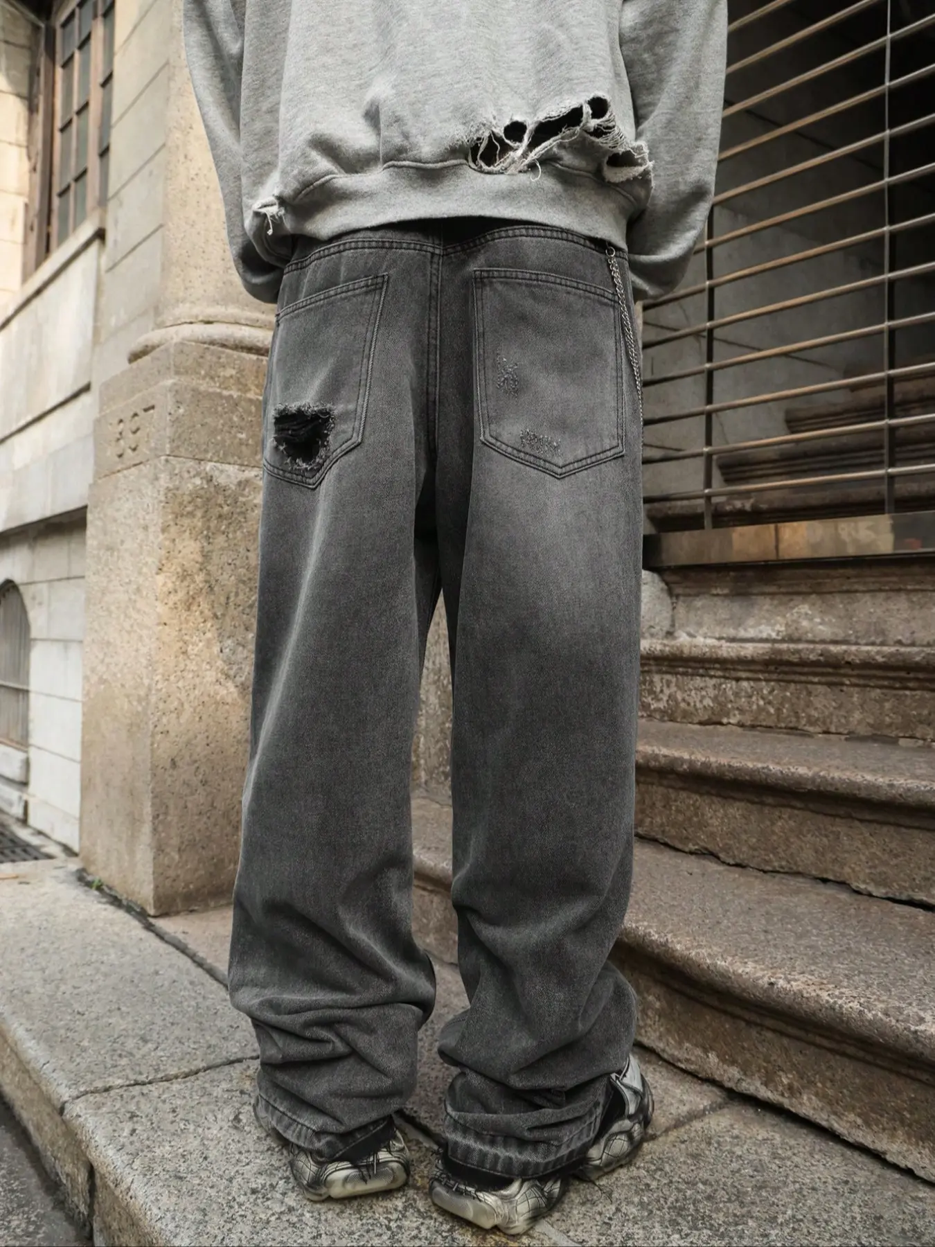 Men's Washed Loose Fit Jeans, Distressed Straight Leg Denim Jeans, Y2K Vintage Street Style, All Seasons, Perfect Gift for Boyfriend/husband, Streetwear