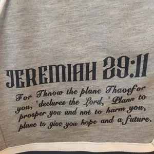 Material is great and all but the words are messed up quoting a bible verse Jeremiah 29:11