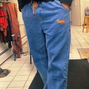Feels like Jean but more comfortable. The elastic waist band really makes a difference. It's like back in the 80s again. It can sit high above waist and I'm loving it.