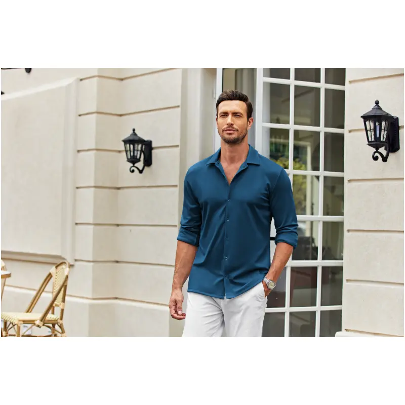 ·【Wrinkle-Free Fabric】Mens slim fit untucked dress shirts made of stretch and high quality fabric, wrinkle free shirts with a clean look, providing you with a comfortable and nature skin feel. Made of 92% polyester and 8% spandex. Lightweight and weightless—no bulky feeling, perfect for all-day wear.
