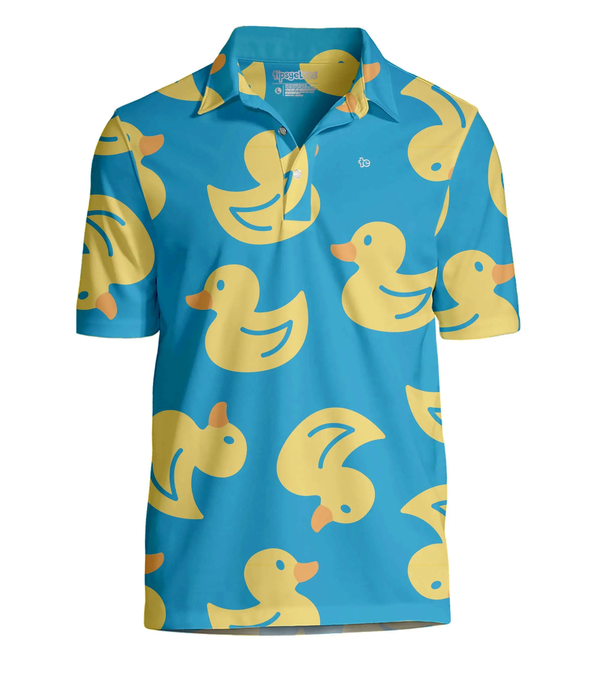 Quack yeah, you’re about to ruffle some feathers. The Men’s Duckin’ Around Golf Polo is for the guy who knows golf is serious business, but not that serious. Covered in bright, bold rubber duckies, this polo proves you can keep your swing smooth while keeping the vibes light. Built with a super soft, sweat wicking fabric and four way stretch, this polo keeps you cool whether you’re draining putts or just floating through the back nine. Wear it loud, play it loose, and let everyone know you’re just out here duckin’ around.