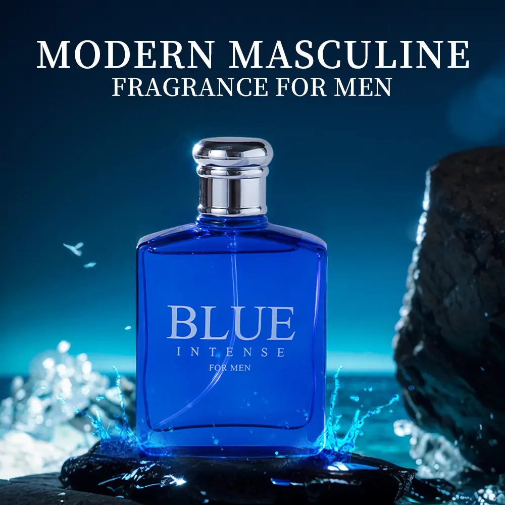 Blue Intense for Men Modern Masculine Eau De Toilette Spray 3.4 Fl Oz Aquatic Fresh Cologne with Citrus Sage Suede Cucumber Muskmelon Tangerine Fragrances Long Lasting