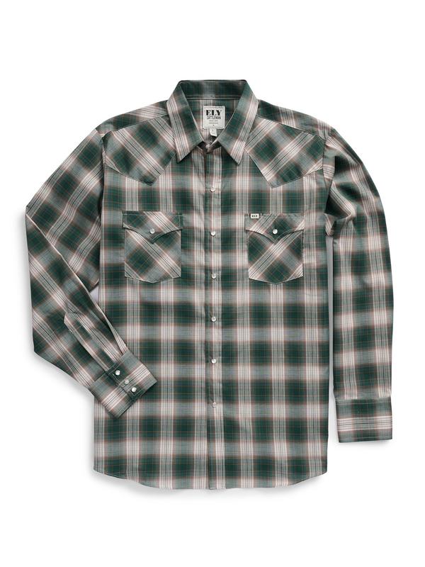 A timeless western classic with rugged style. This men’s long-sleeve shirt features a green plaid pattern, pearl snap buttons, and traditional western yokes. Designed with double flap chest pockets and snap cuffs, it delivers the perfect blend of authenticity and comfort. Whether you’re headed to work, a night out, or the rodeo, this shirt pairs effortlessly with jeans and boots for a true cowboy look.