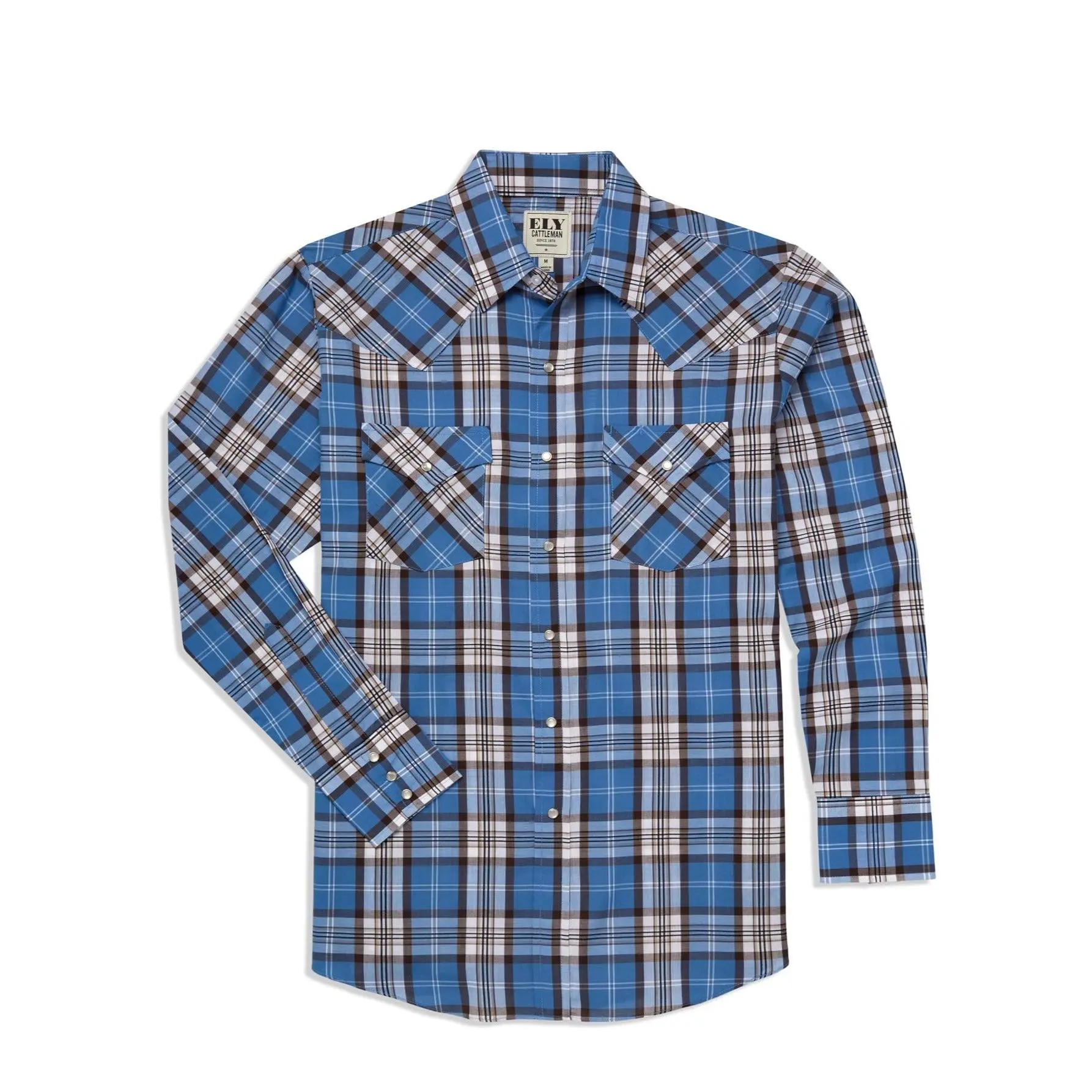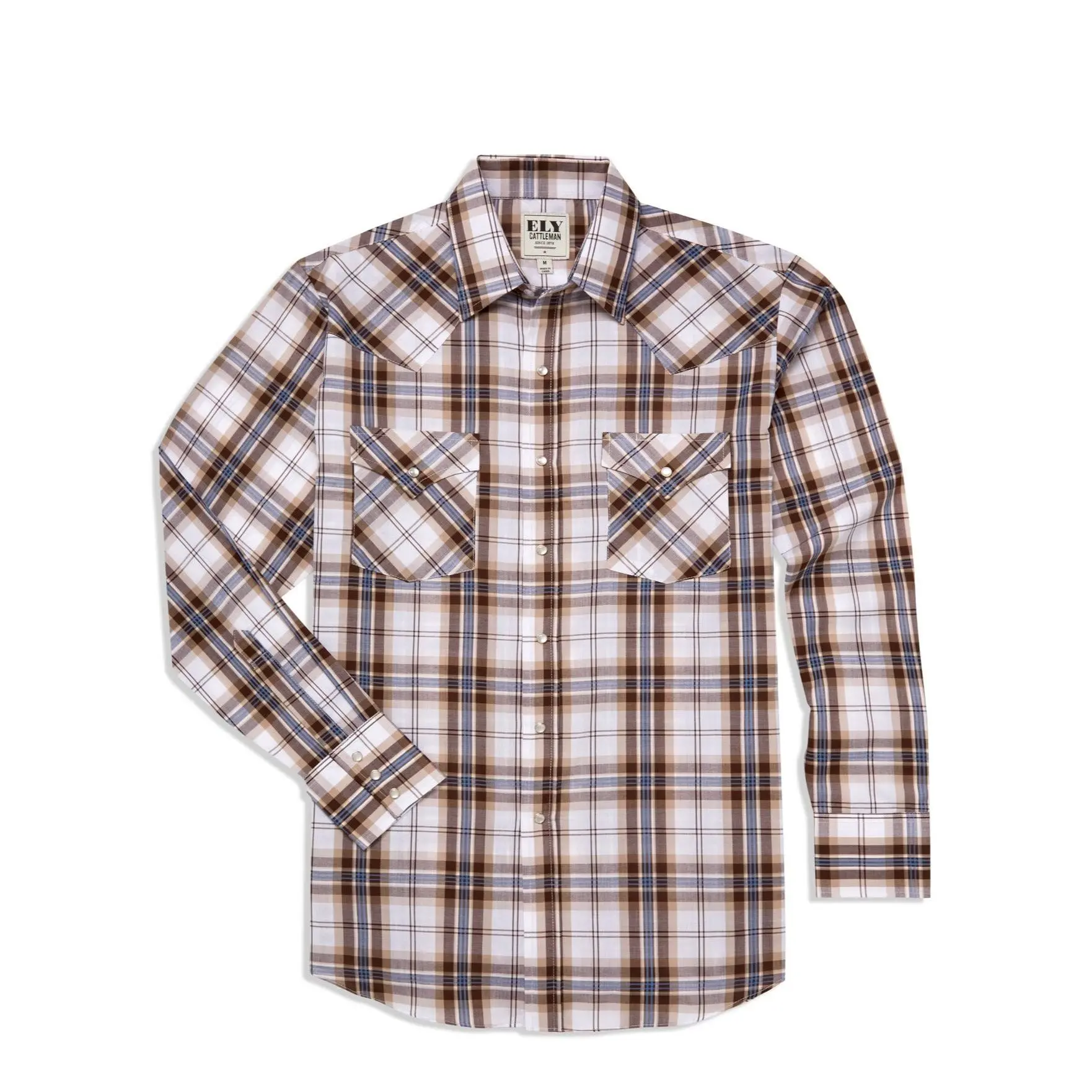 @Ely Cattleman  Men’s Long Sleeve Pearl Snap Western Shirt Shown in Blue & Brown Plaid #western #pearlsnap #men