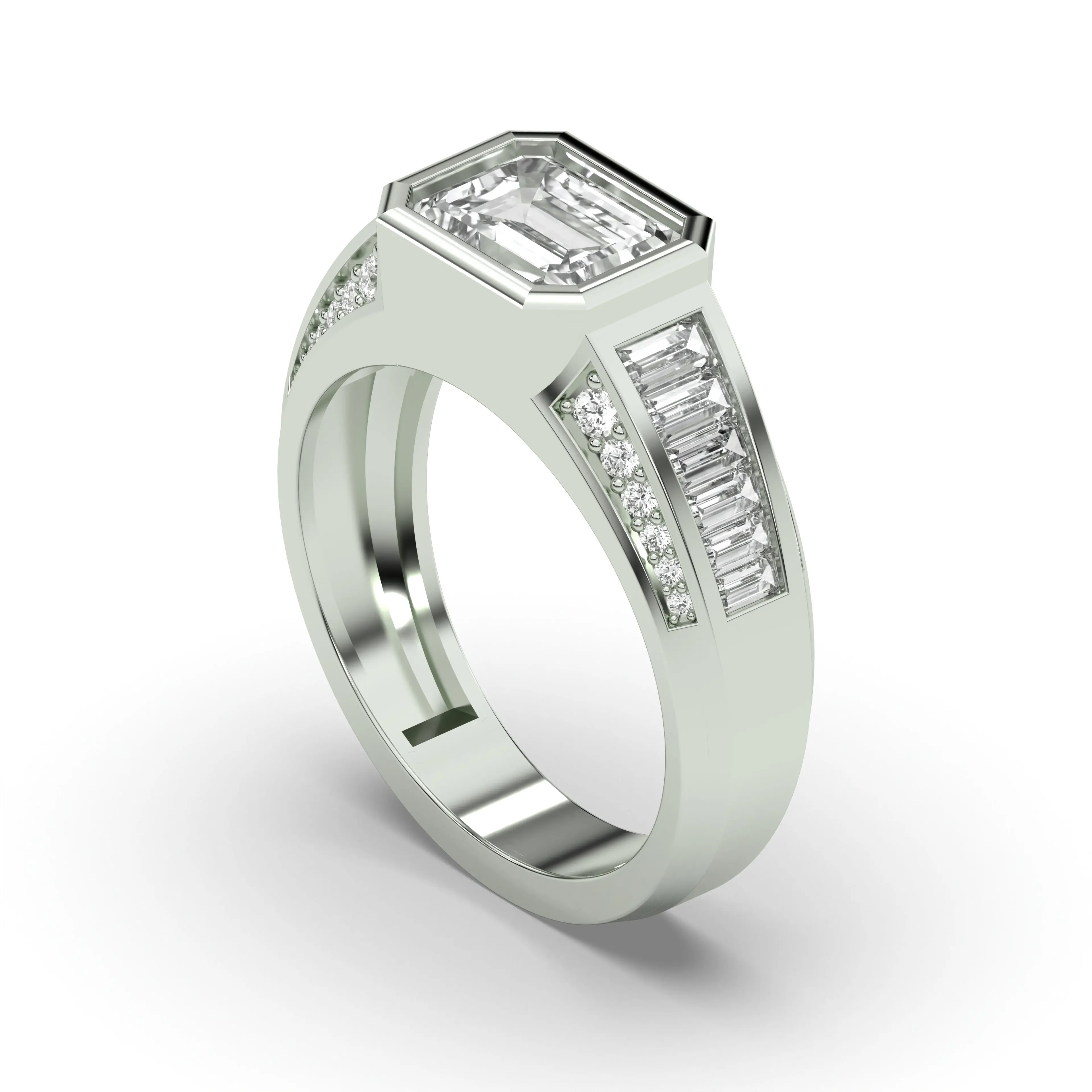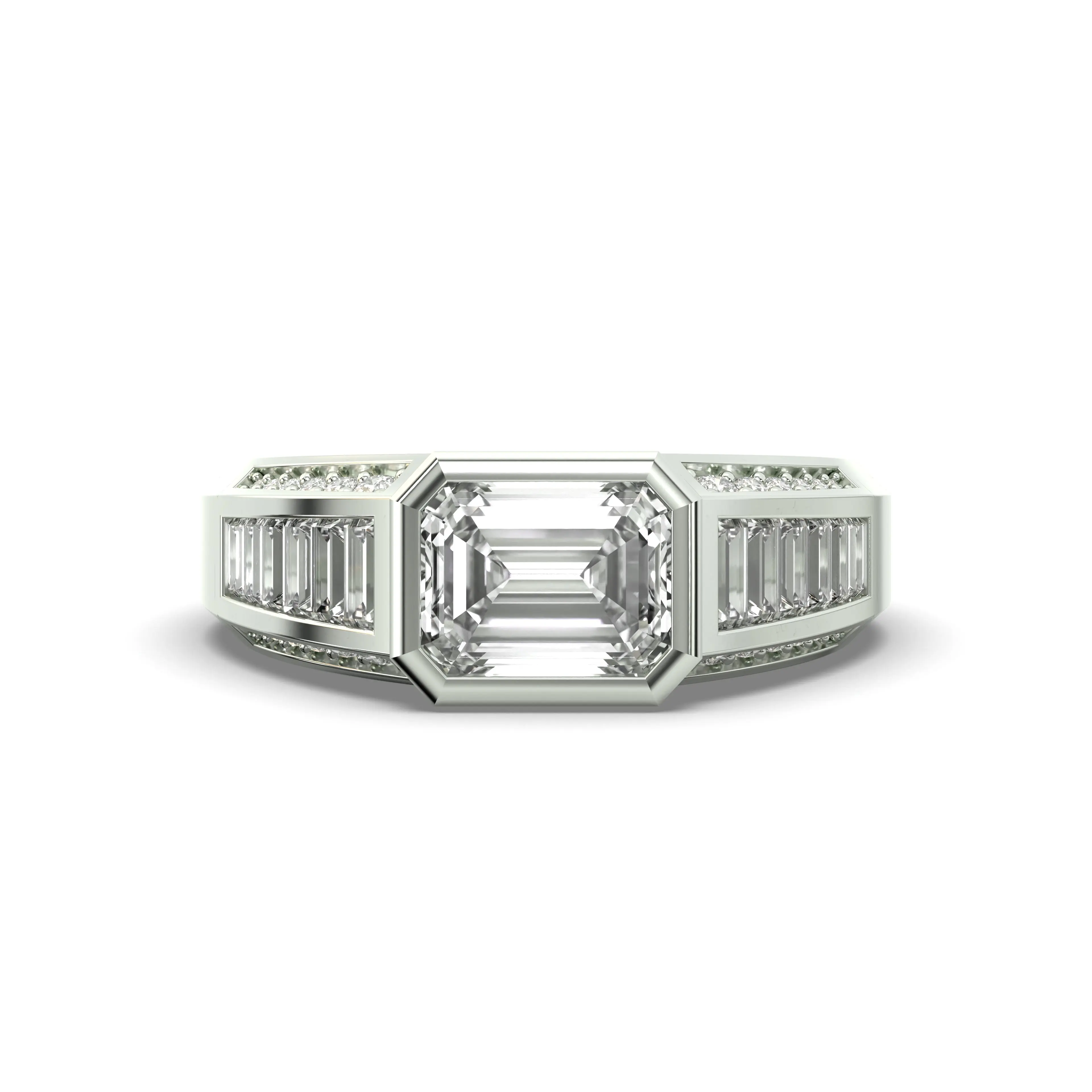 Crafted in premium white gold, this Emerald Cut & Round Diamond ring delivers strength, refinement, and NYC-inspired luxury—built to shine for a lifetime.