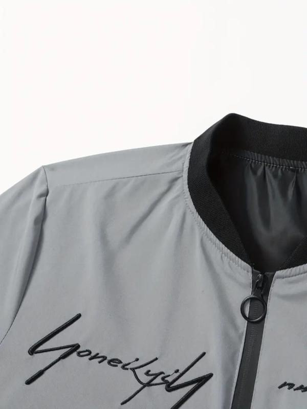 TJL Men's Fall/Winter Letter Embroidery Zipper Jacket Long-Sleeved Windproof Casual Coat Baseball Collar Outerwear Regular Fit for Autumn and Winter Clothes Menswear jackets multi-pocket men