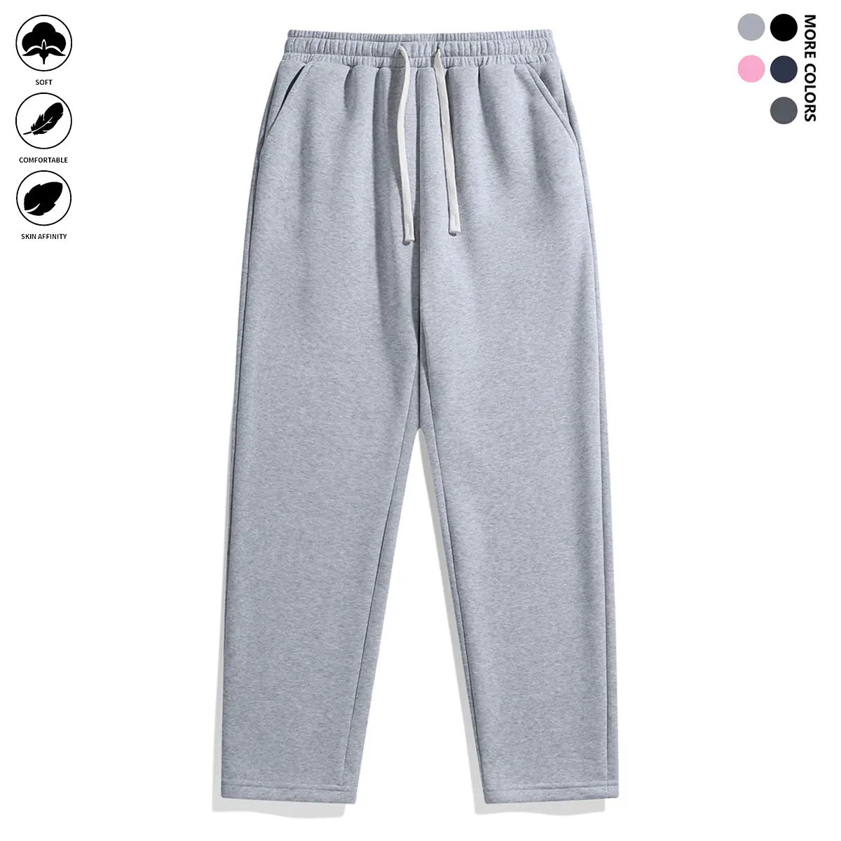 5. Men's fashion basic polyester joggers with pockets, solid color, slightly stretchy, regular fit casual sports pants with an elastic drawstring waistband sweatpants