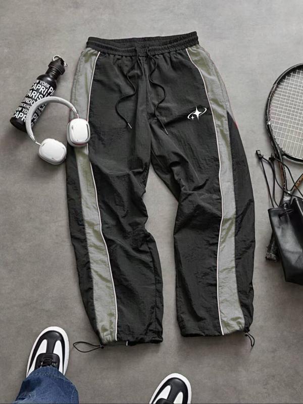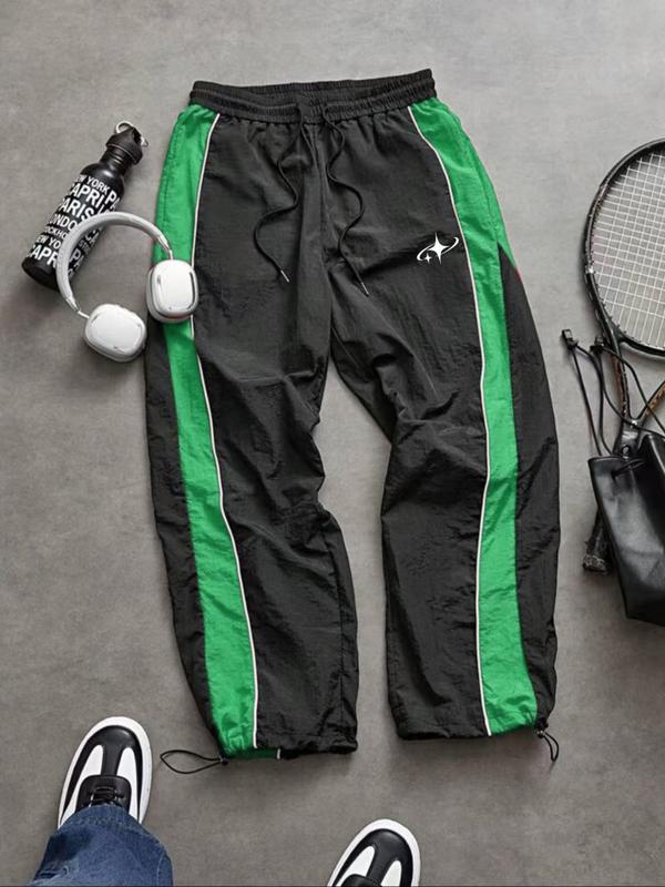 Men's Fashion Print Casual Outdoor Pants, Loose Fit Gym Shorts, Waist Drawstring, Elastic Cuff Design, Nylon Fabric, Lightweight Comfort, Outdoor Training Pants