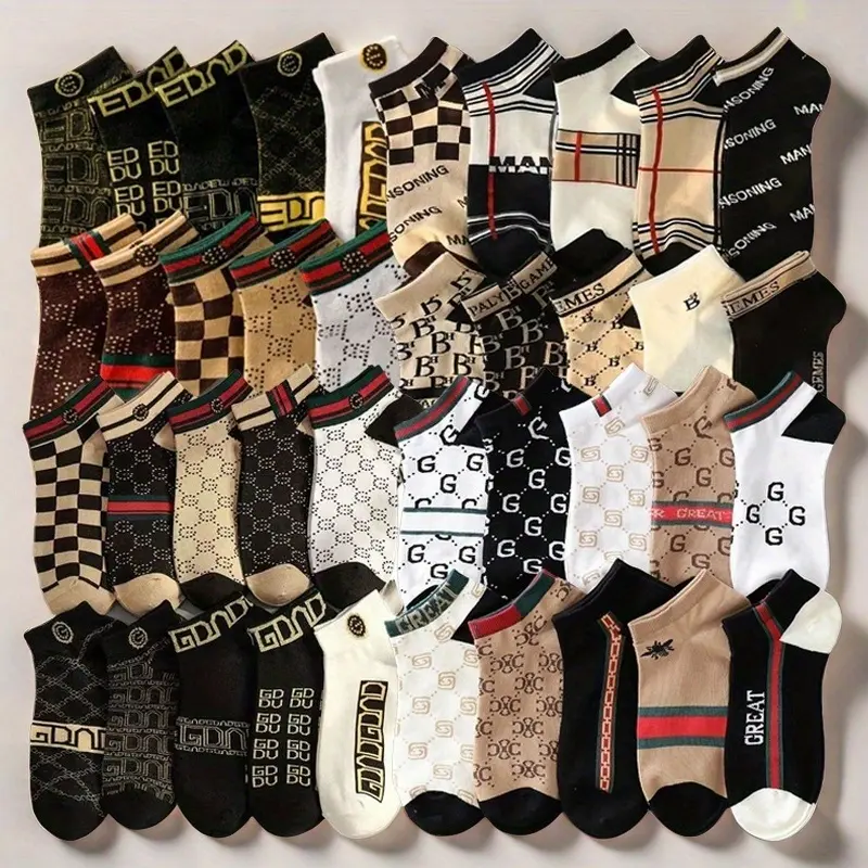 10/20 Pairs of Hot Selling Men's Fashionable, Elastic, Comfortable, Breathable Boat Shaped Low Cut Knitted Ankle Socks, Sports Socks, Suitable for Daily Outdoor Activities and Holiday Gifts Menswear Tropical SpringStatements