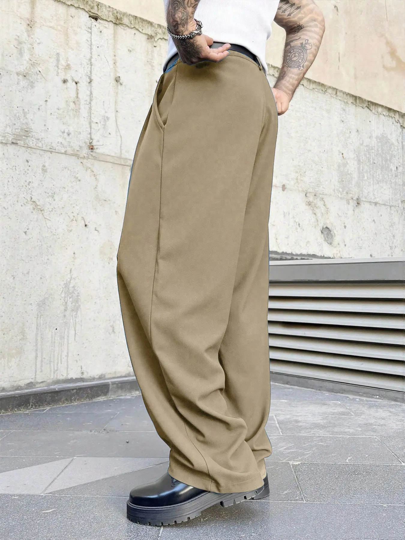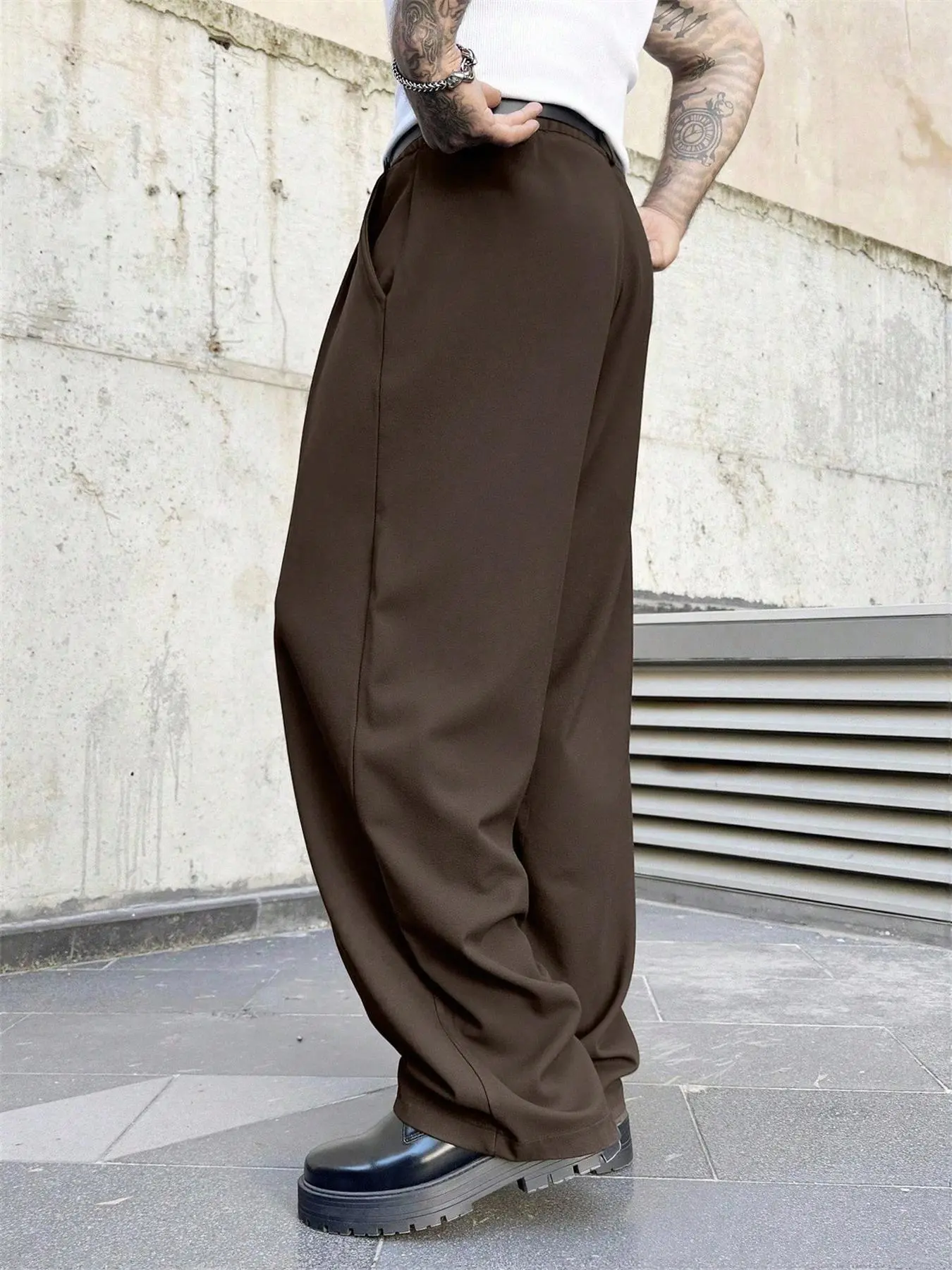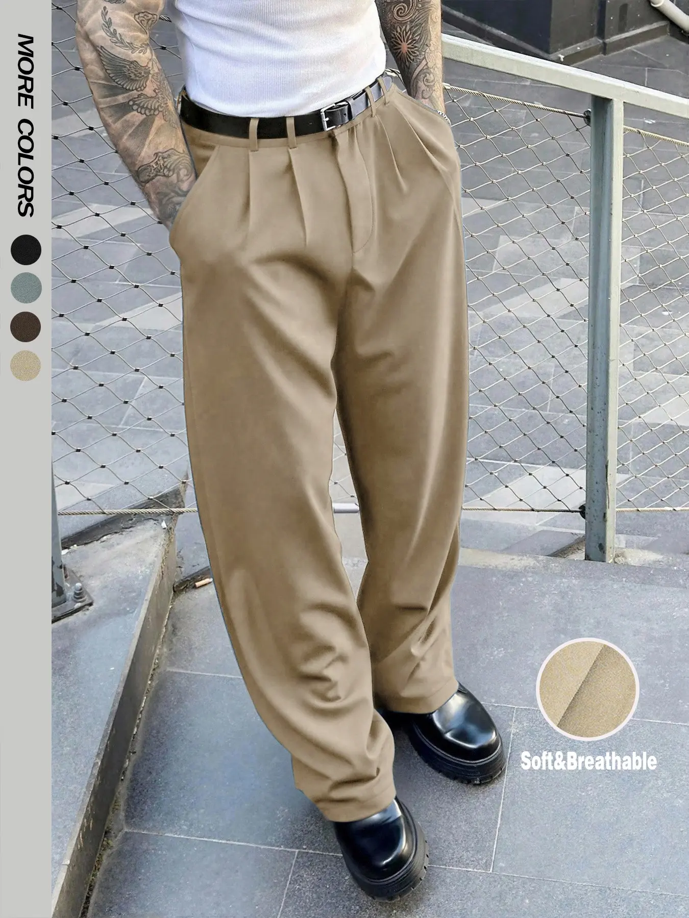 5. Men's Fashion Loose Fit Dress Pants Casual Solid Color Formal Suit Pants Elegant Wide Leg Elastic Waist Draping Effect Commuting Pants Work Life Clubwear Plain Flat-Front Business Office Pants