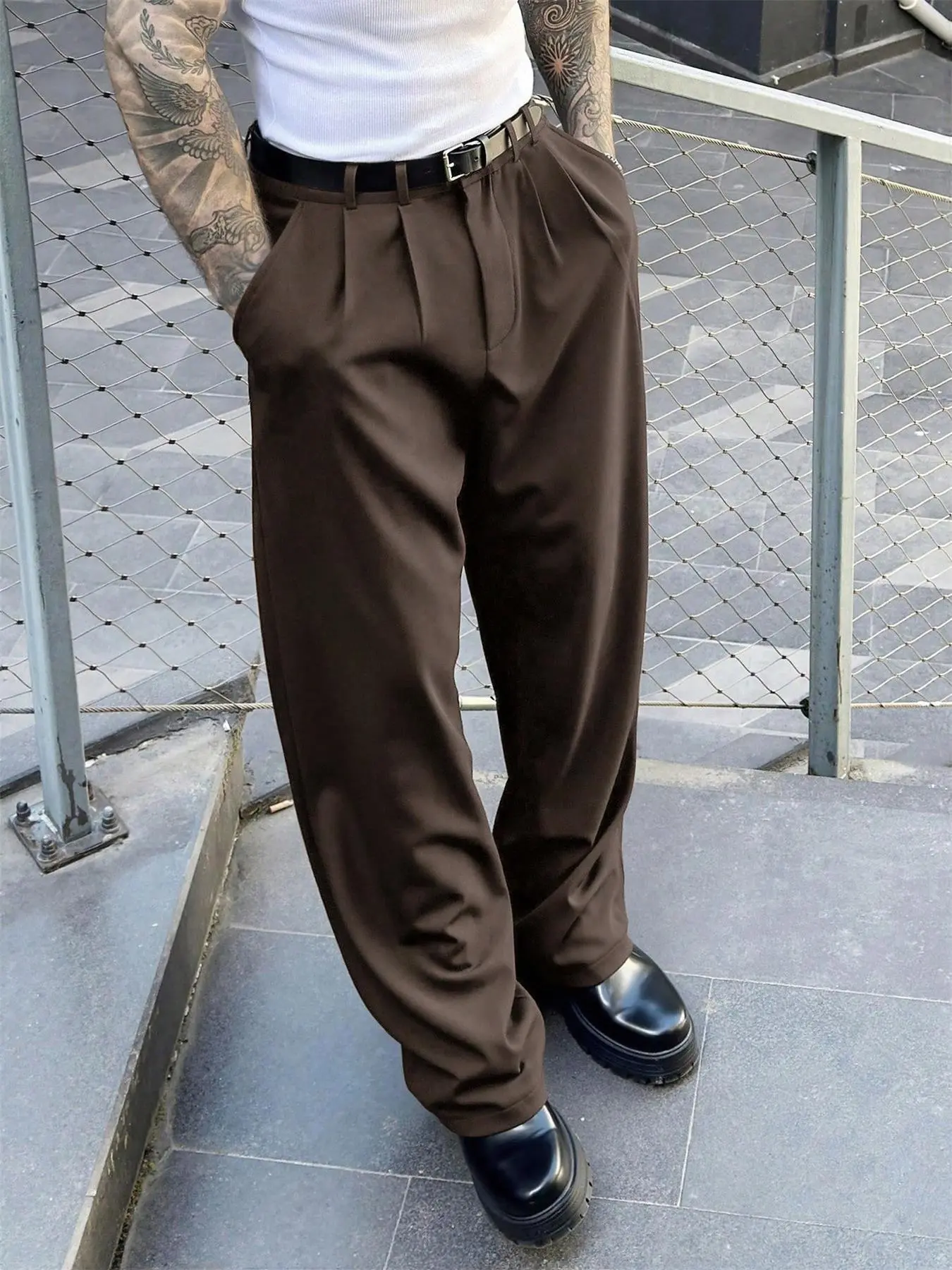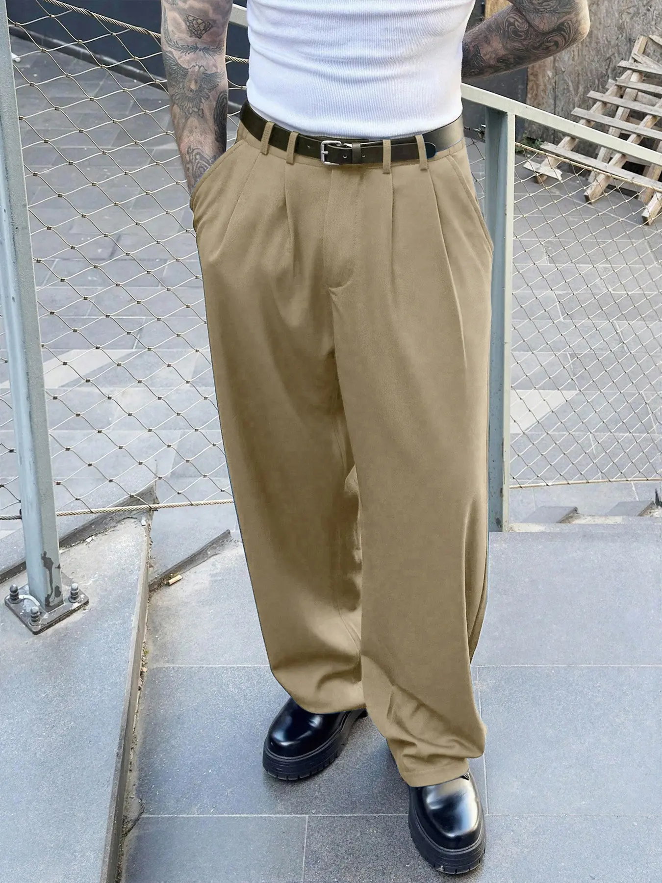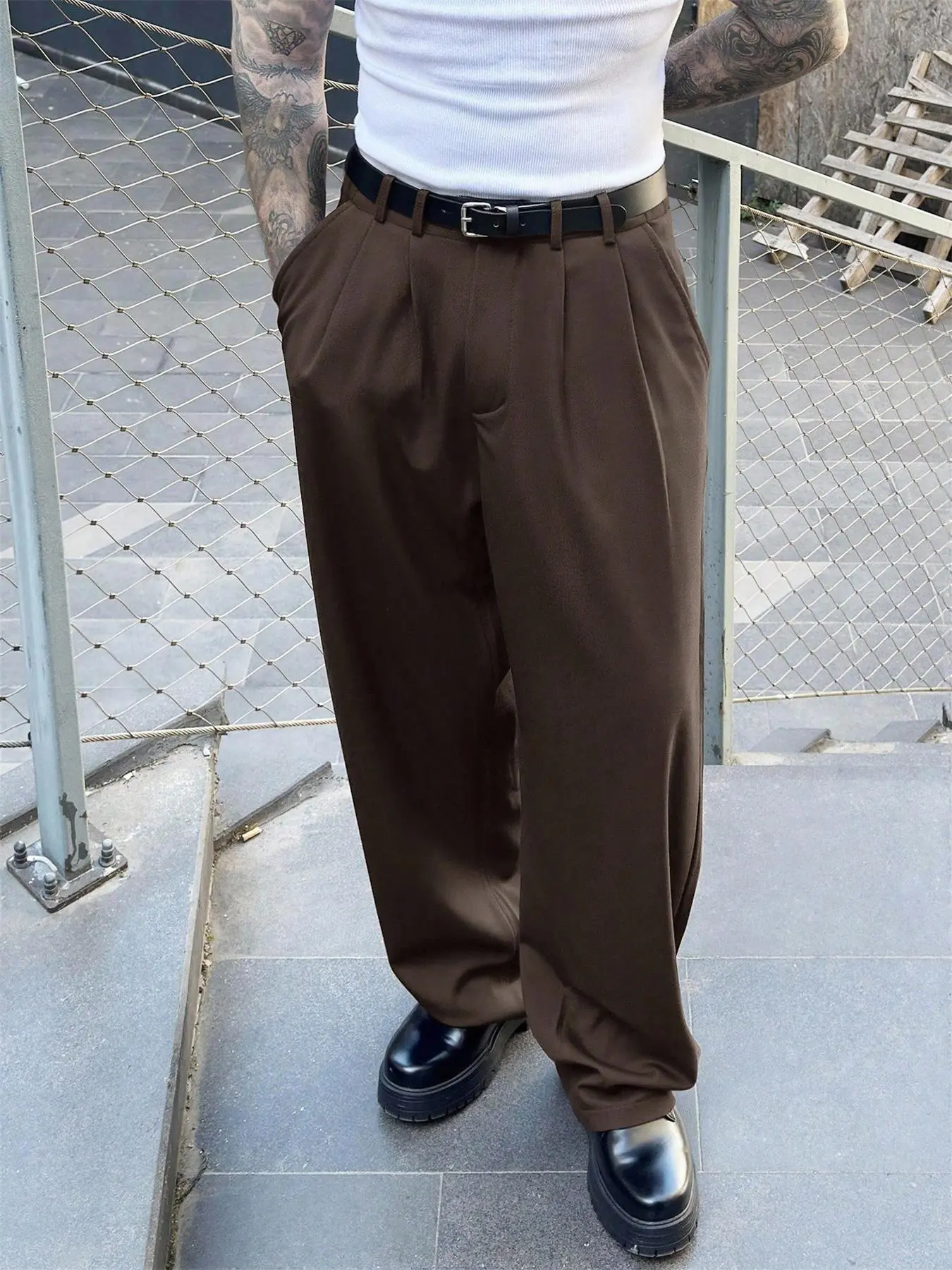 5. Men's Fashion Loose Fit Dress Pants Casual Solid Color Formal Suit Pants Elegant Wide Leg Elastic Waist Draping Effect Commuting Pants Work Life Clubwear Plain Flat-Front Business Office Pants