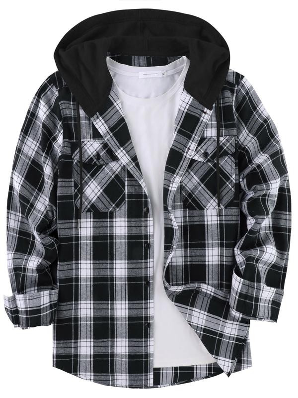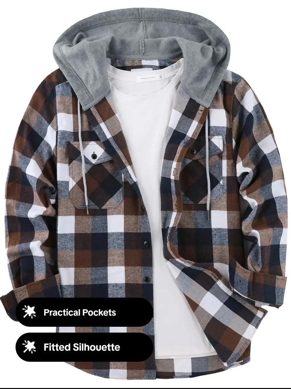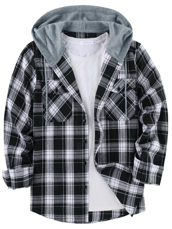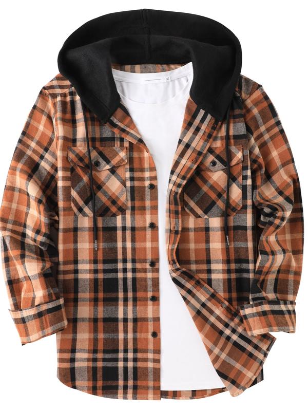 Men's Flannel Hoodie Long Sleeve Fashion Plaid Hooded Shirt Button Neckline with Pockets, Casual Winter Wear for Men